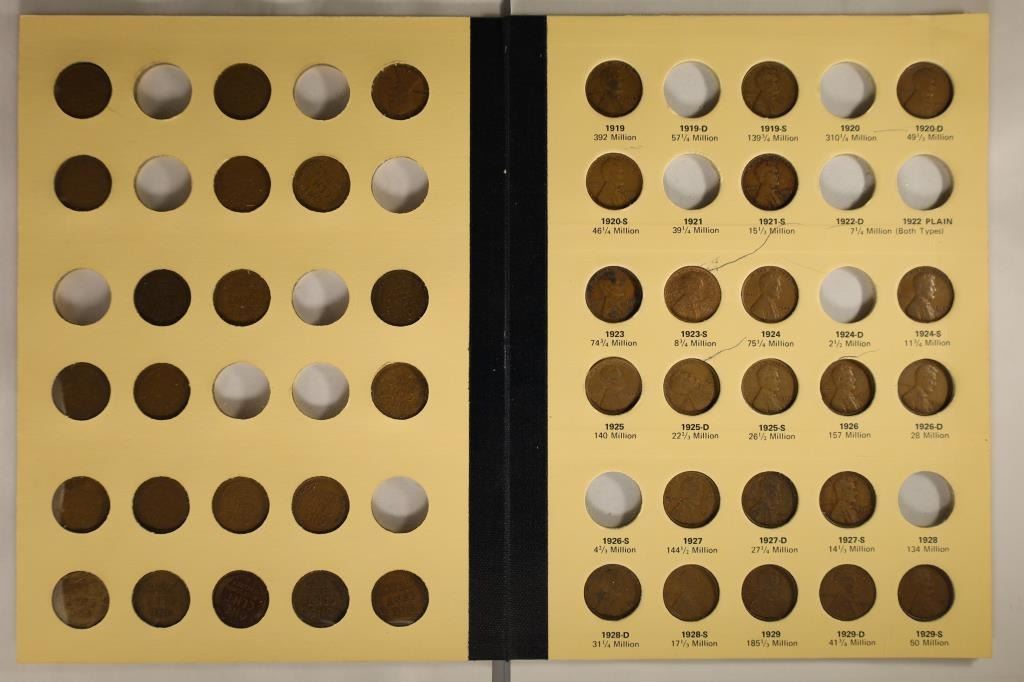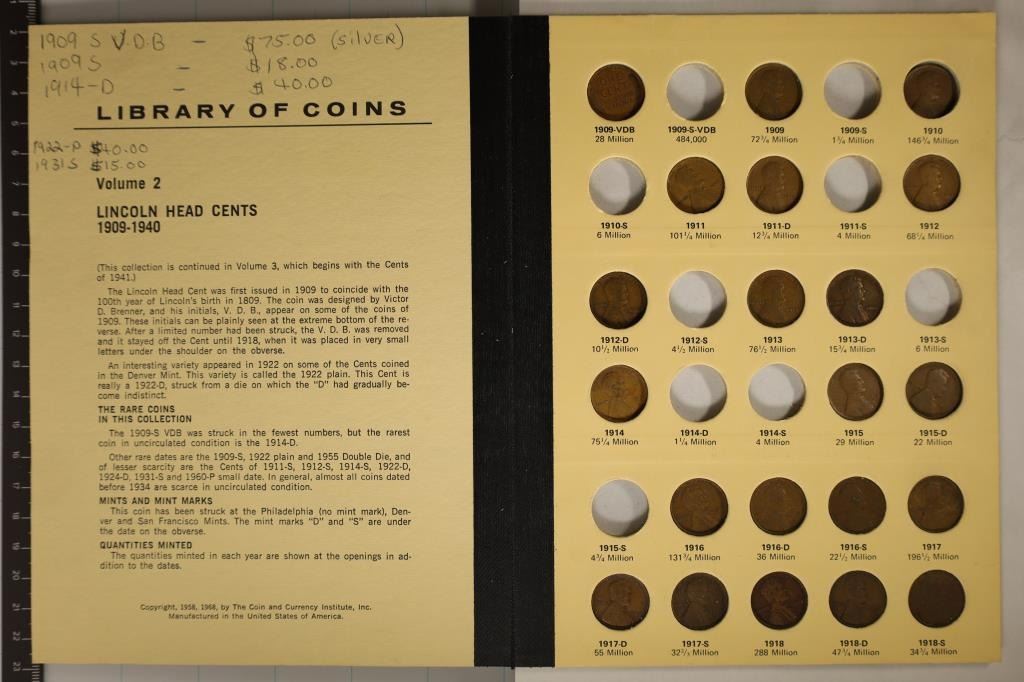 PART 1 (1909-1940) WITH 72 COINS FROM 1909-1940 INCLUDES SOME BRILLIANT UNC'S SEE PIC. WRITING ON COVER INSIDE PAGES