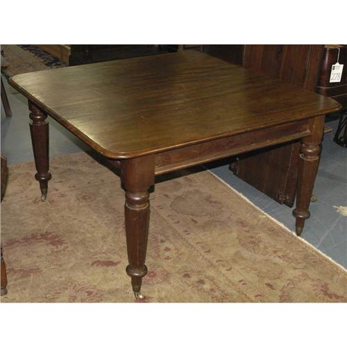 1 VICTORIAN MAHOGANY SQUARE DINING TABLE with 2 leaves, 48" circa 1880 PACKING AND SHIPPING must be handled by 3rd party shipper. CONDITION REPORT: light stains to top, scratches.