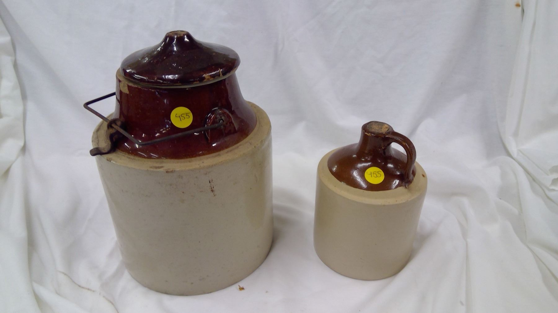 1- VINTAGE PICKLE JAR + 1- MINI WHISKEY JUG