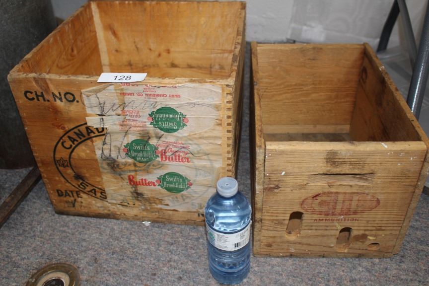 1 Vintage Butter Crate and 1 Ammunition Crate