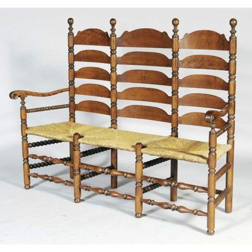 1 WALLACE NUTTING<BR>William & Mary Triple Settee<BR>with rush seat, unsigned<BR>66" wide, 49" high<BR>CONDITION REPORT: excellent