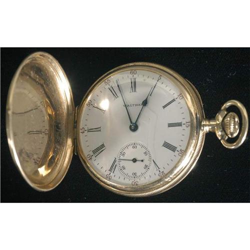 1 WALTHAM HUNTER CASE 14K GOLD POCKET WATCH 45mm PACKING AND SHIPPING (excluding insurance) by Fairfield Auction to points within the Continental U.S.A. (international must be handled by 3rd party shipper) $20. CONDITION REPORT: no key, not running.
