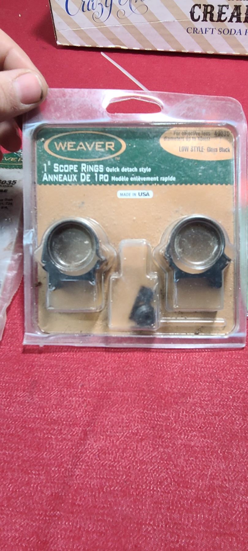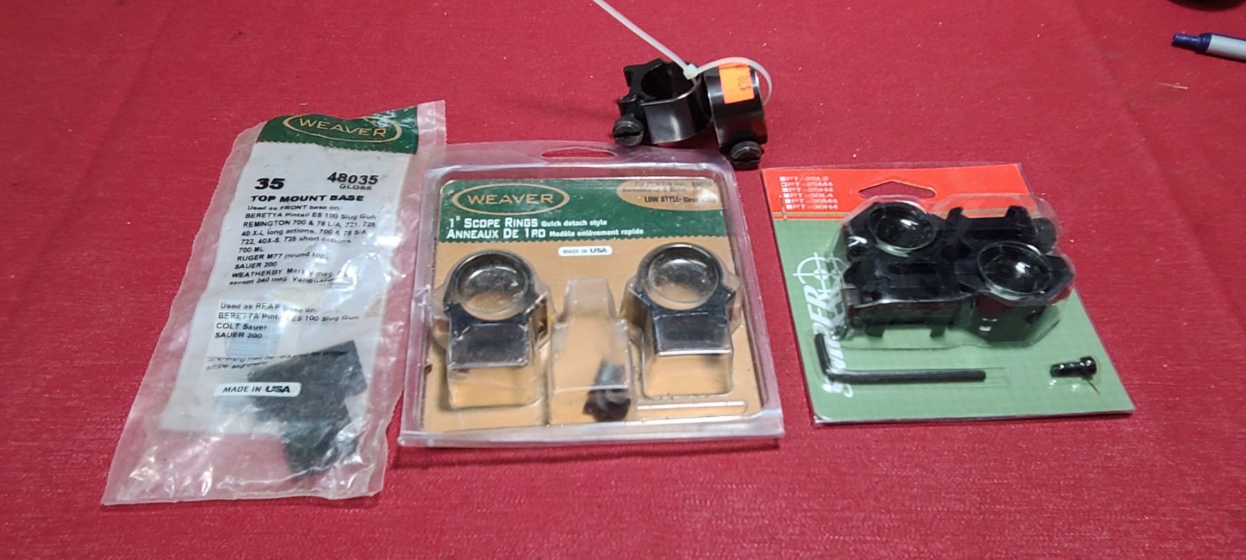 1" WEAVER SCOPE RINGS 40MM #49030 AND WEAVER TOP MOUNT BASE 48035 AND SNIPER SCOPE RINGS