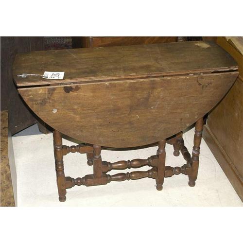 1 WILLIAM & MARY STYLE DROP LEAF TABLE 42" long 19th century PACKING AND SHIPPING must be handled by 3rd party shipper. CONDITION REPORT: stains, scratches, splits.