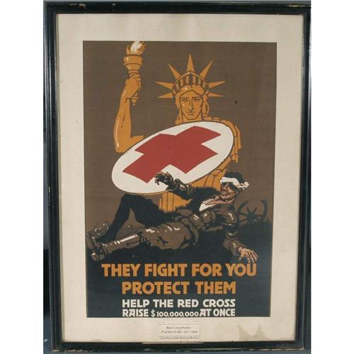 1 WORLD WAR I RED CROSS POSTER "They Fight For You" 37"x25" PACKING AND SHIPPING must be handled by 3rd party shipper. CONDITION REPORT: stains, creases and small tears.