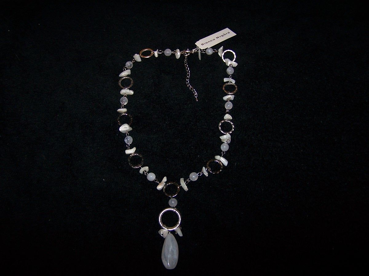 1 white stone necklace by "Bianca Nygard" $20.00 retail. Store return.