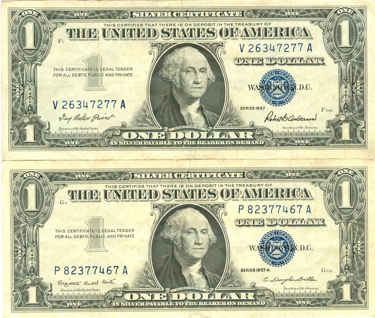 $1 XF/AV Silver Certificate Currency Lot of 2.