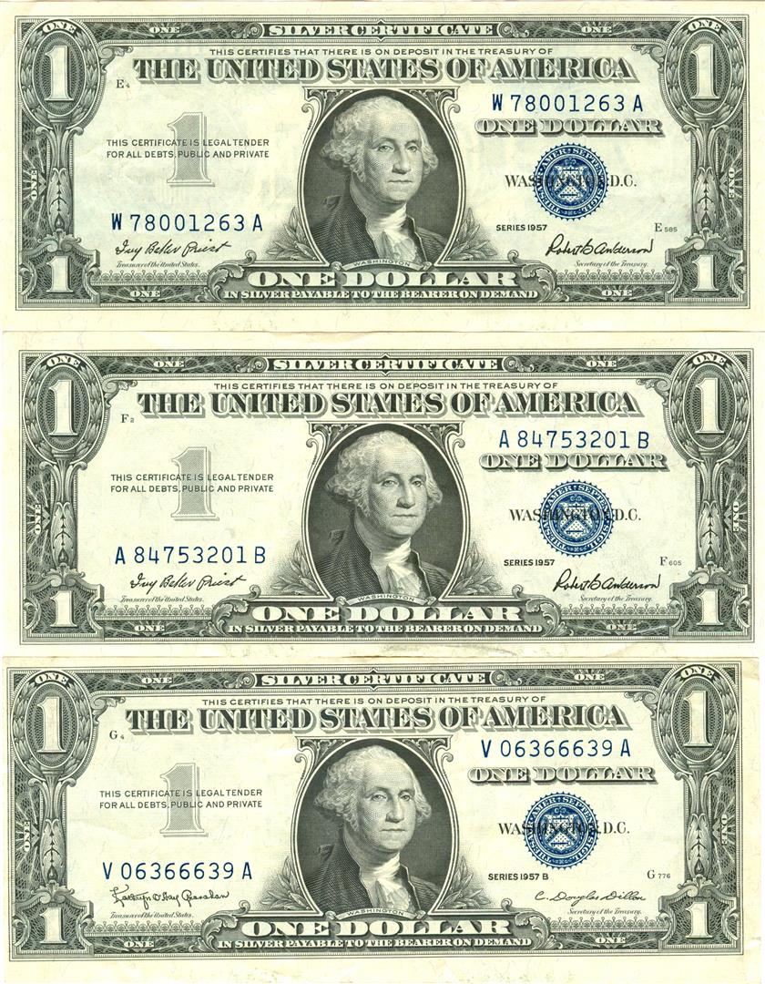 $1 XF/AV Silver Certificate Currency Lot of 3.