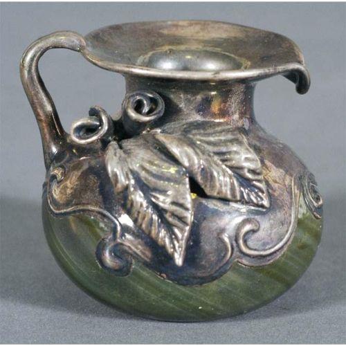 1 attributed to LOETZ SILVER<BR>OVERLAY CABINET SIZE PITCHER<BR>2" high, unmarked <BR>CONDITION REPORT: excellent.<BR>PACKING AND SHIPPING (excluding insurance) by Fairfield Auction to points within the Continental U.S.A. (Canada and all other international must be handled by 3rd party shipper) $20.