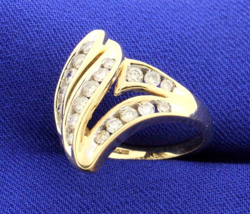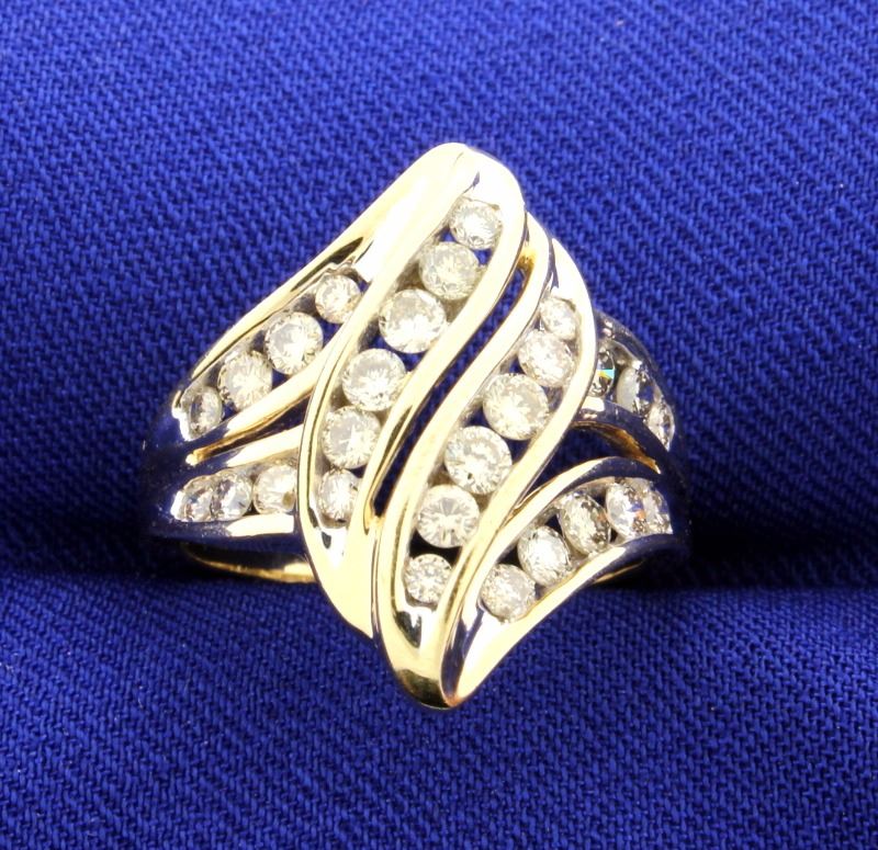 Beautiful and classic this 10k yellow gold ring sparkles with a full carat of diamonds! The brilliant cut diamonds are SI clarity and I-J colors. Clean and shiny, this ring look new! Size 6 1/2 5.0g