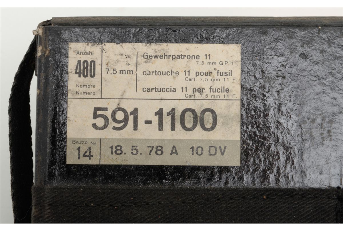 1 case of foreign 7.5mm cartridges. Est.: $100-$150.