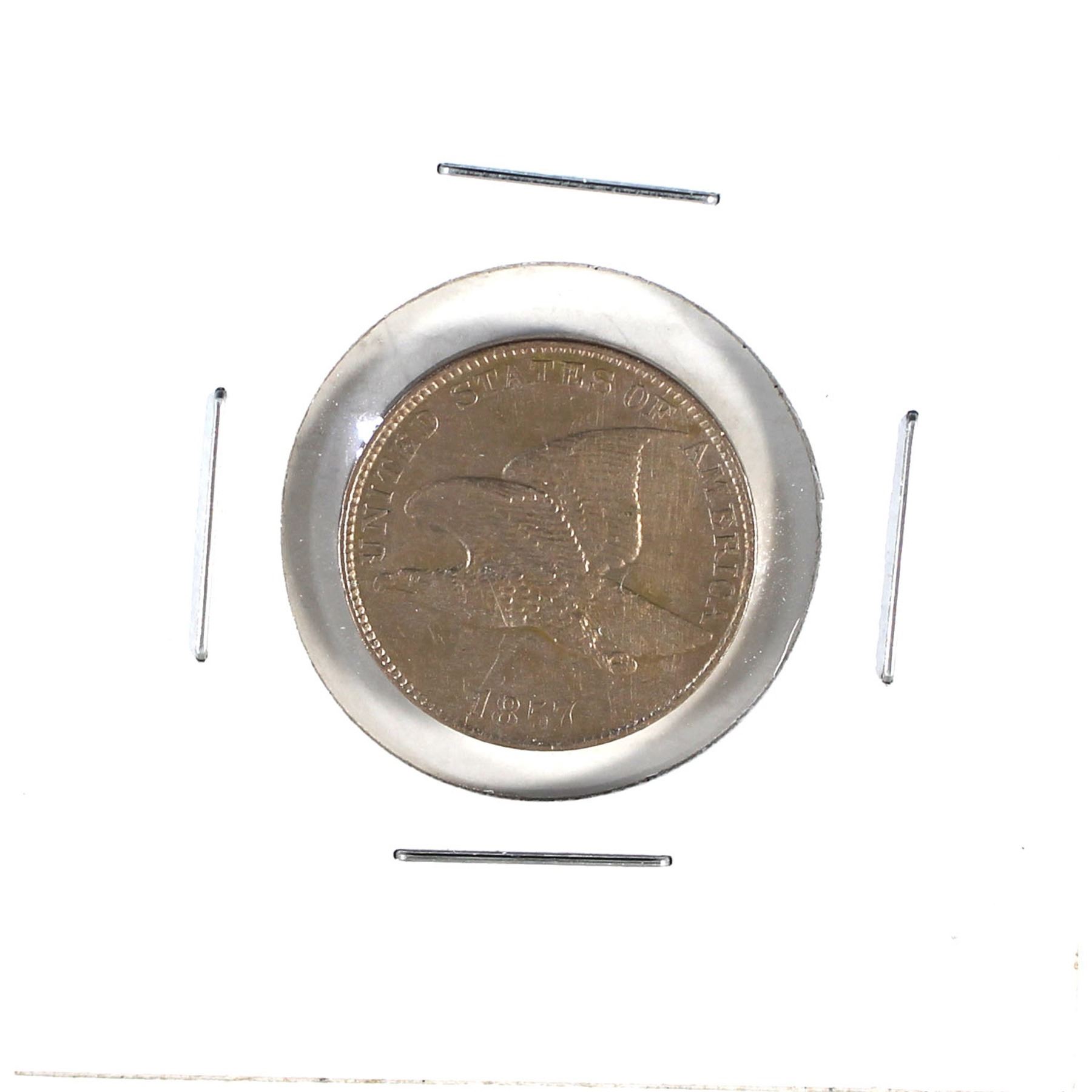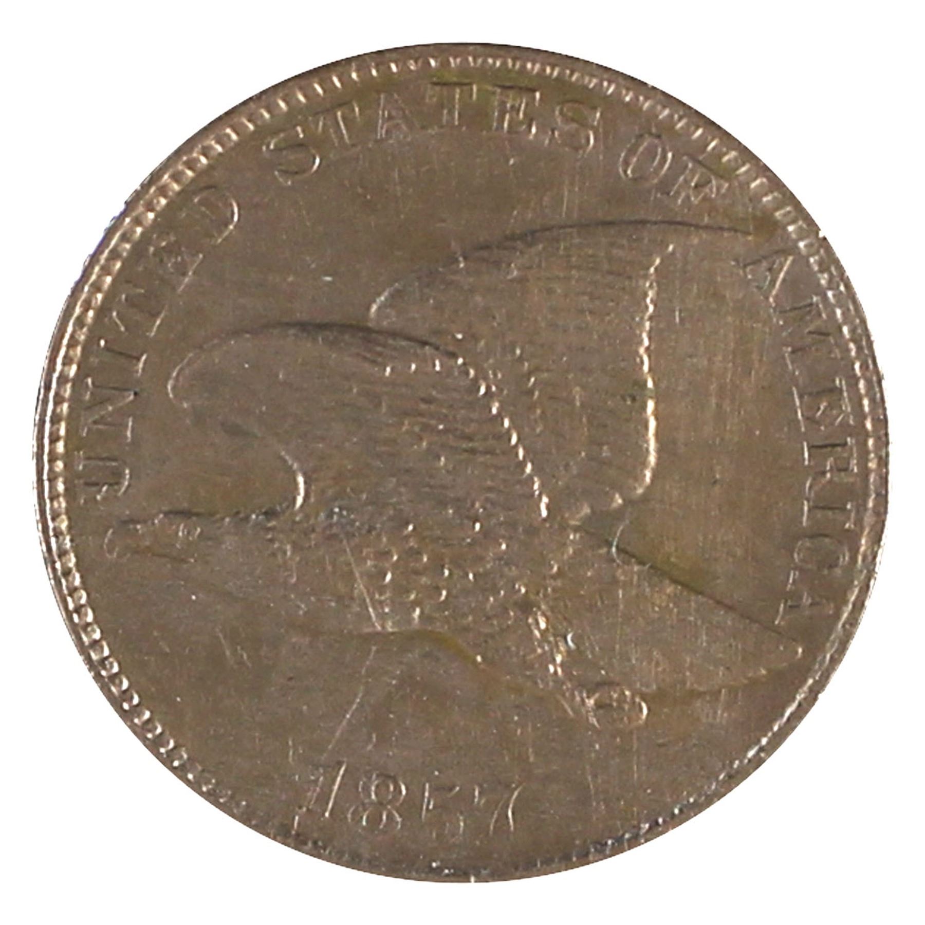 1-cent 1857 United States Flying Eagle in approximately EF condition (lightly cleaned)