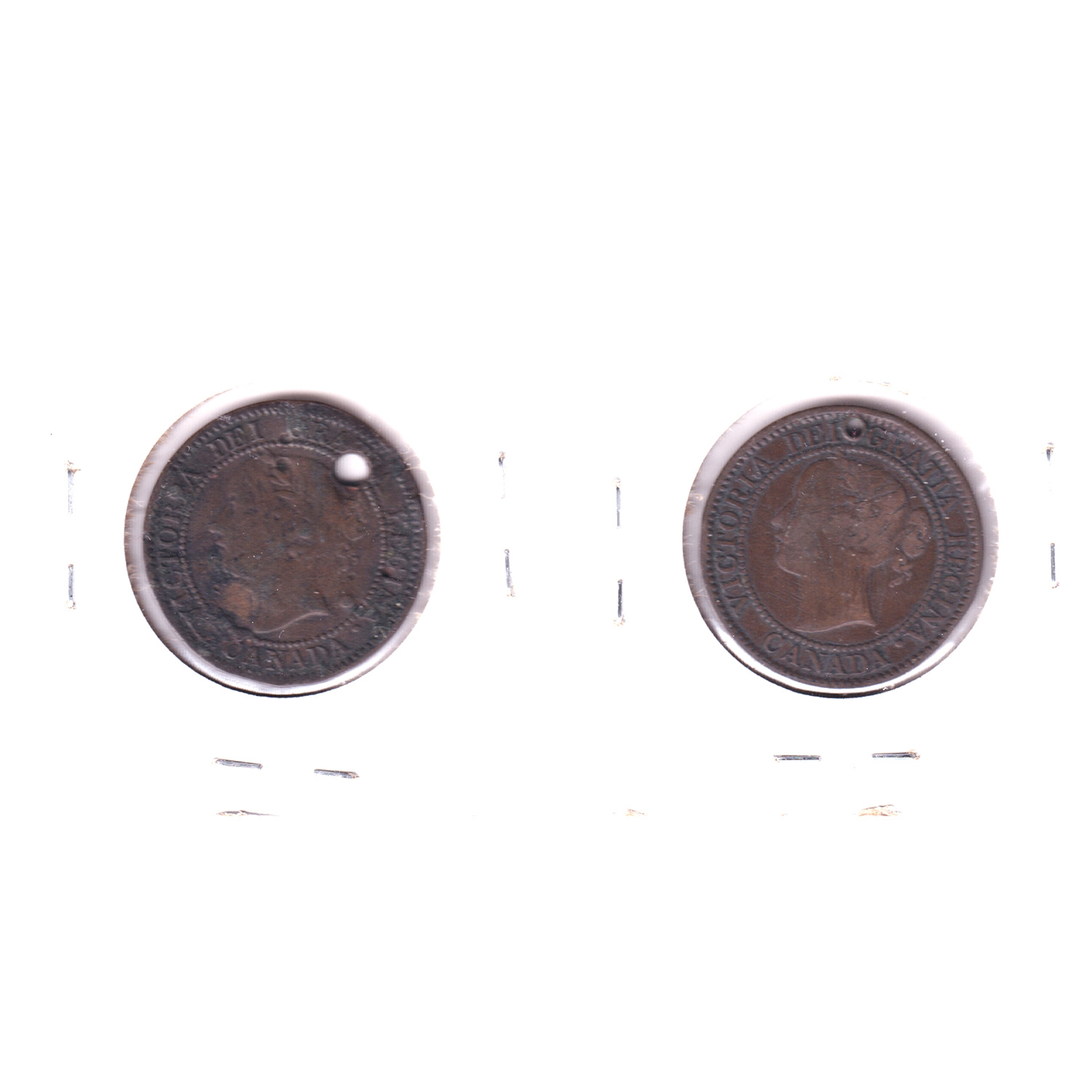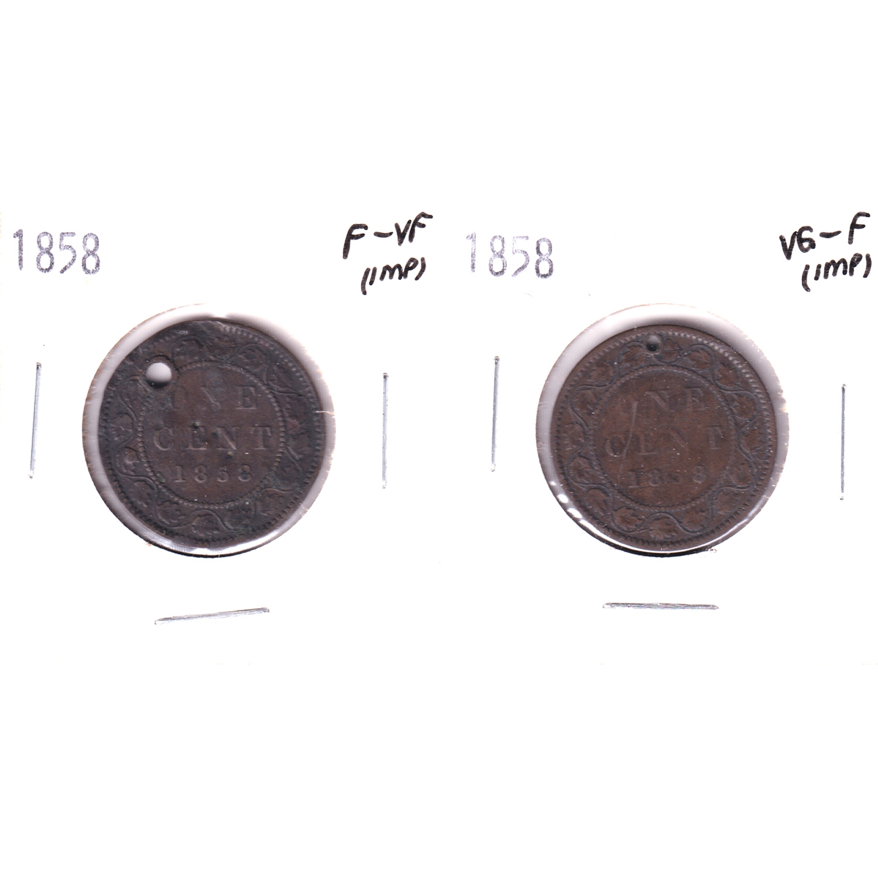 1-cent 1858 VG-F & F-VF (Impaired). 2pcs.
