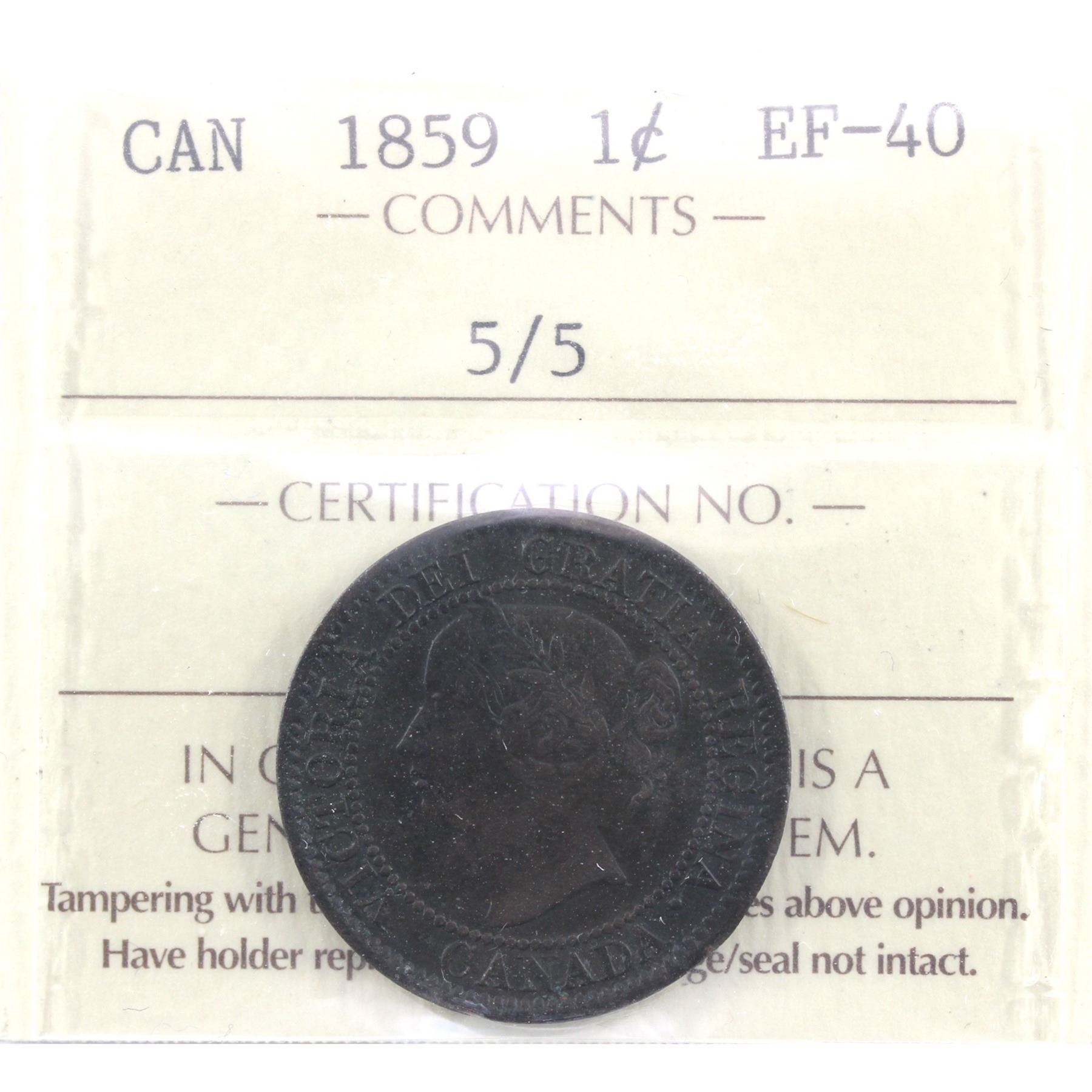 1-cent 1859 5/5 ICCS Certified EF-40.