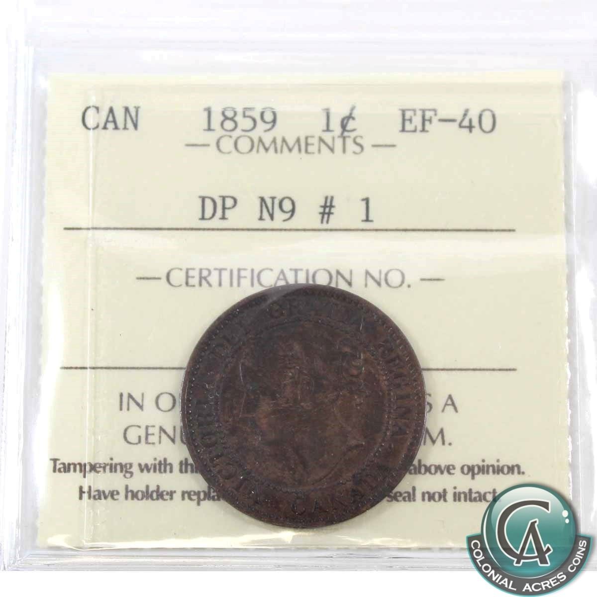 1-cent 1859 DP N9 #1 ICCS Certified EF-40.