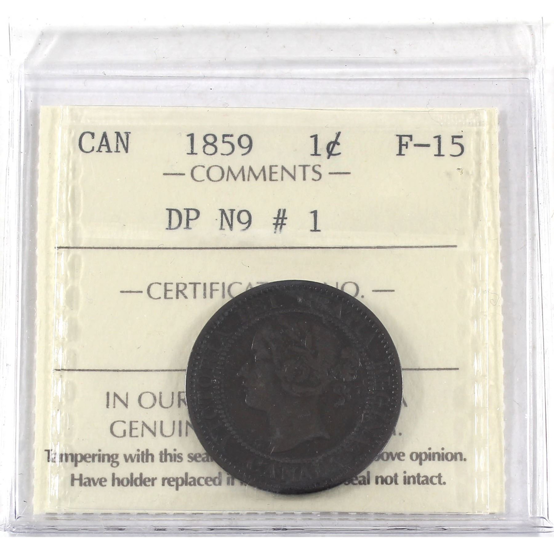 1-cent 1859 DP N9 #1 ICCS Certified F-15 *Scarce Variety type*