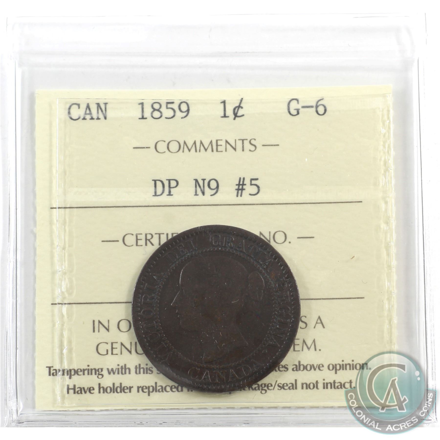 1-cent 1859 DP N9#5 ICCS Certified G-6