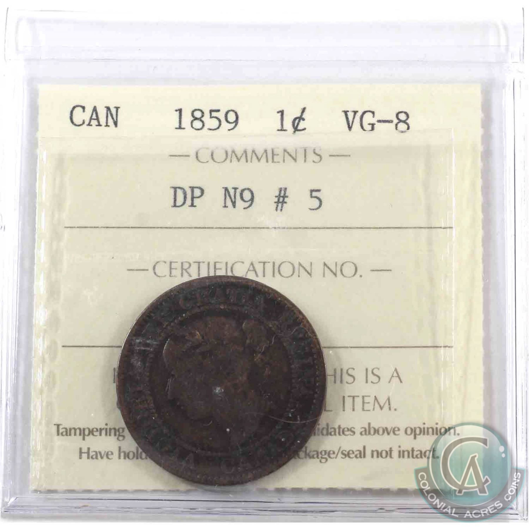 1-cent 1859 DP N9#5 ICCS Certified VG-8
