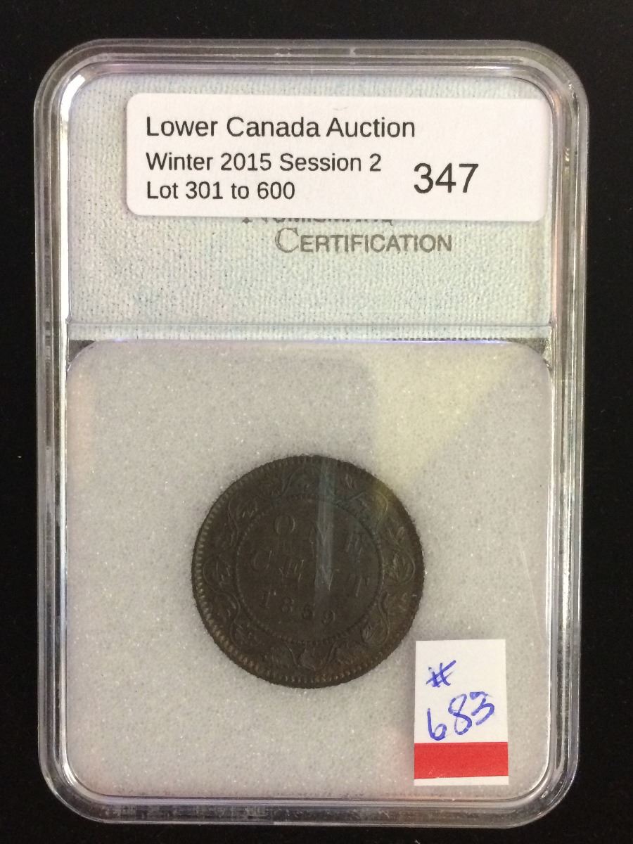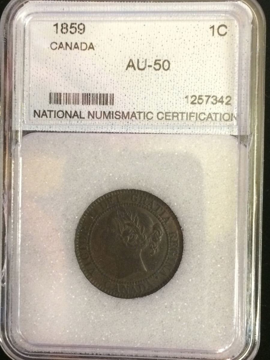1 cent 1859; NNC certified AU-50. Not noted Low 9.