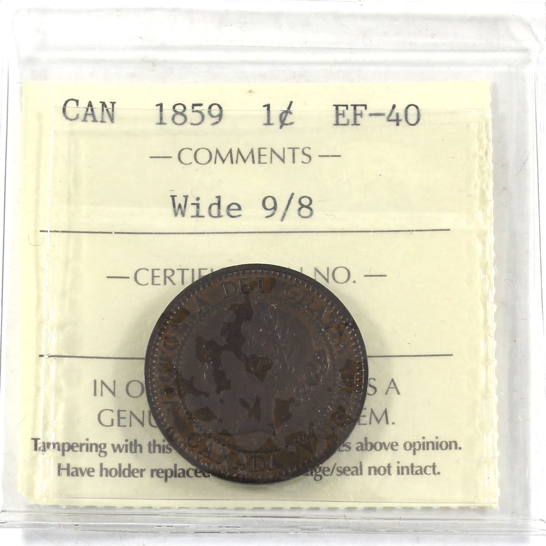 1-cent 1859 Wide 9/8 ICCS Certified EF-40.