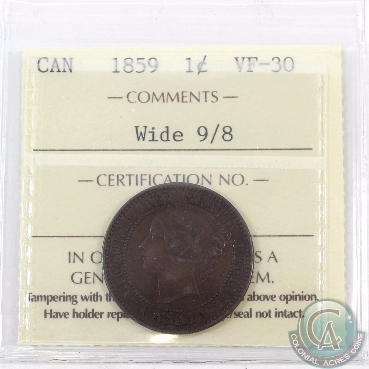 1-cent 1859 Wide 9/8 ICCS Certified VF-30