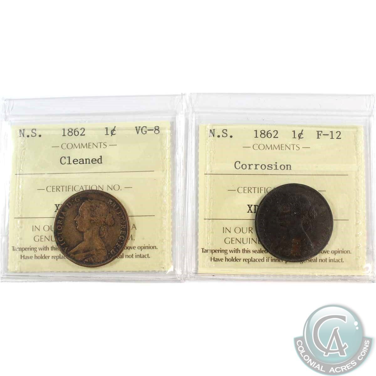 1-cent 1862 N.S ICCS Certified VG-8 Cleaned & F-12 Corrosion. 2pcs