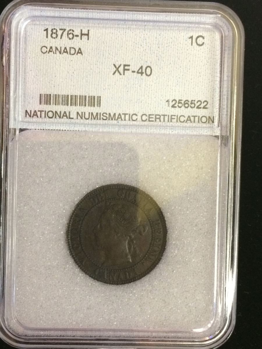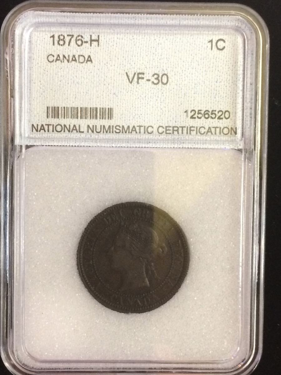 1 cent 1876H; NNC certified VF-30 and XF-40. Lot of 2 coins.