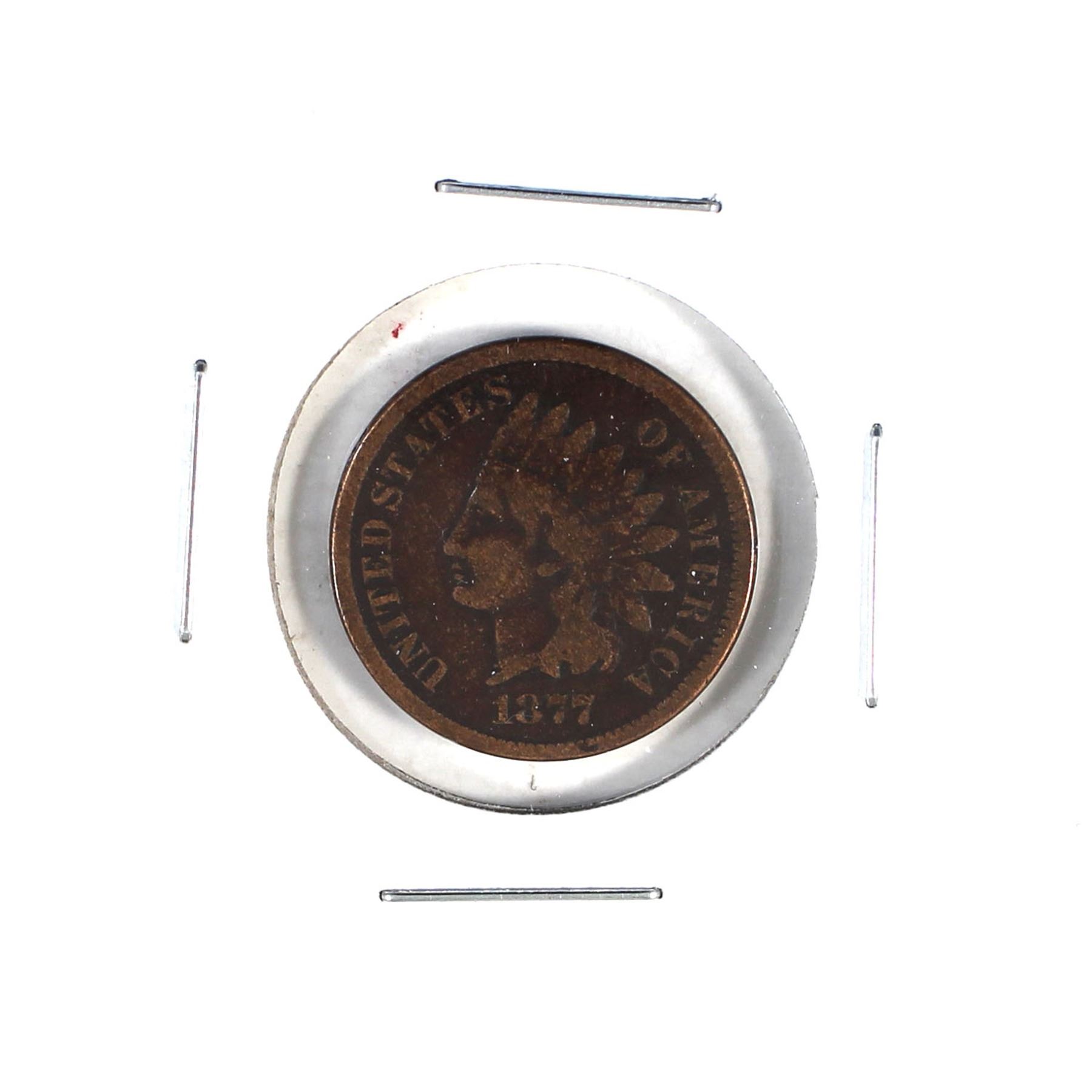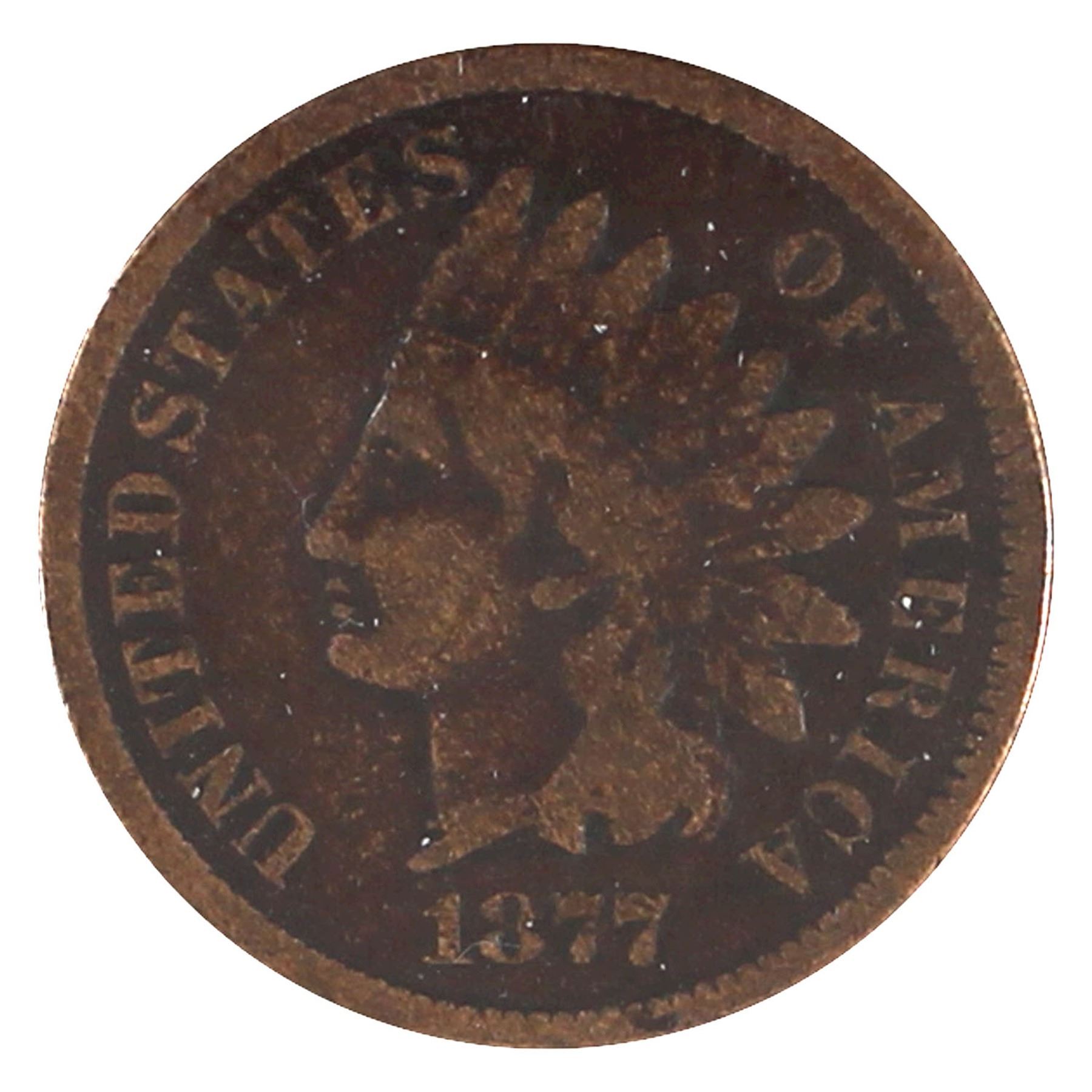 1-cent 1877 Indian Head in approximate G-VG condition *Key Date*. Full date and lettering with nice deep chocolate coloring throughout.
