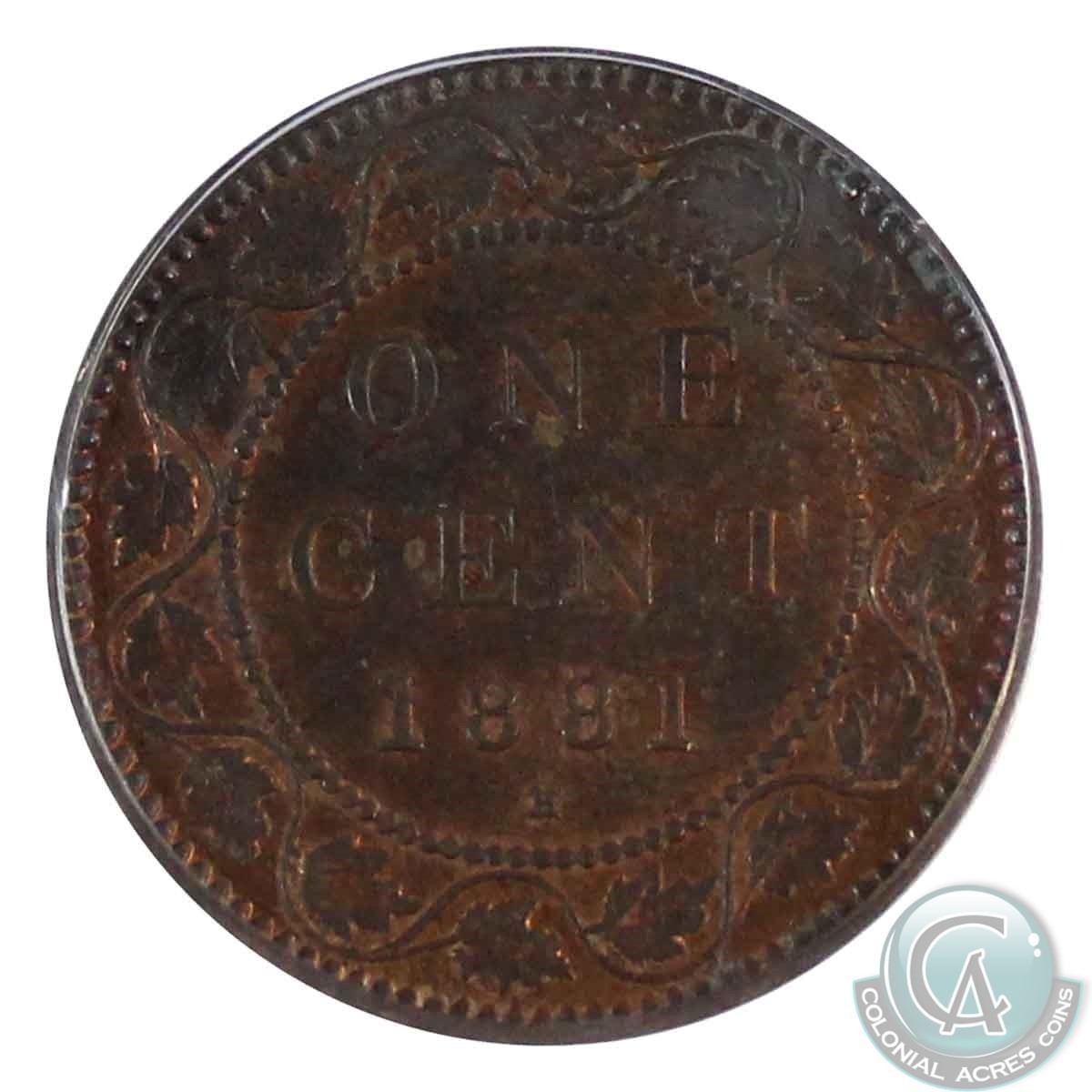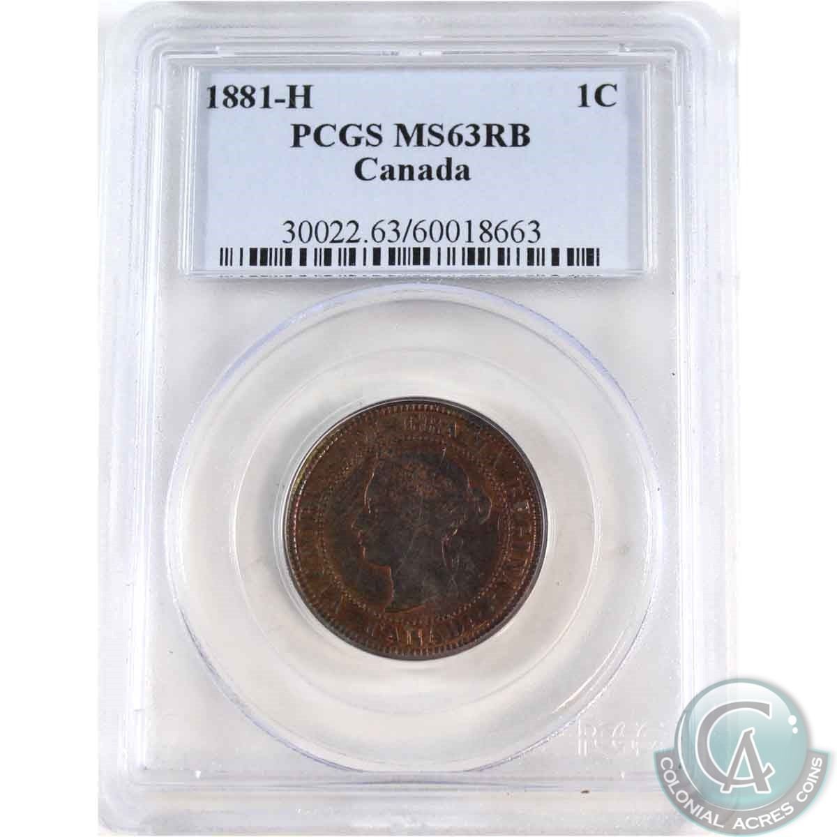 1-cent 1881H PCGS Certified MS-63 RB. Coin contains consistent red tones with lustrous tones throughout.