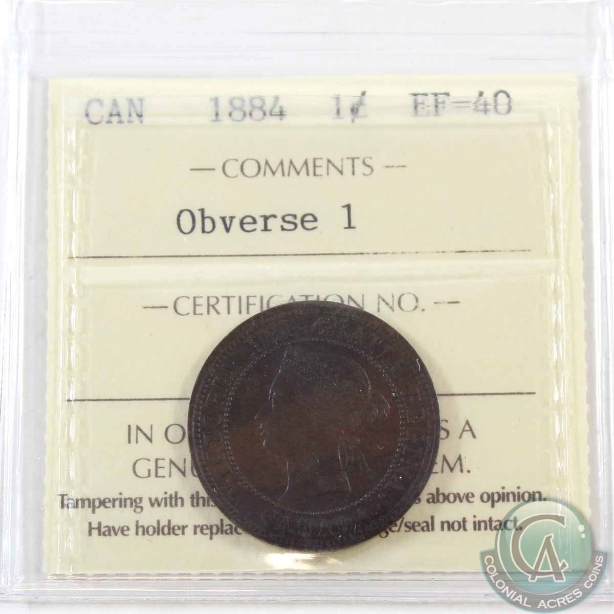 1-cent 1884 Obverse 1 ICCS Certified EF-40