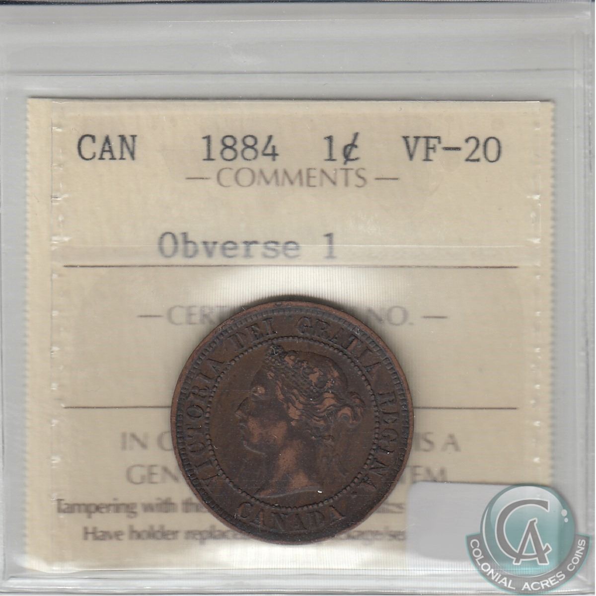 1-cent 1884 Obverse 1 ICCS Certified VF-20