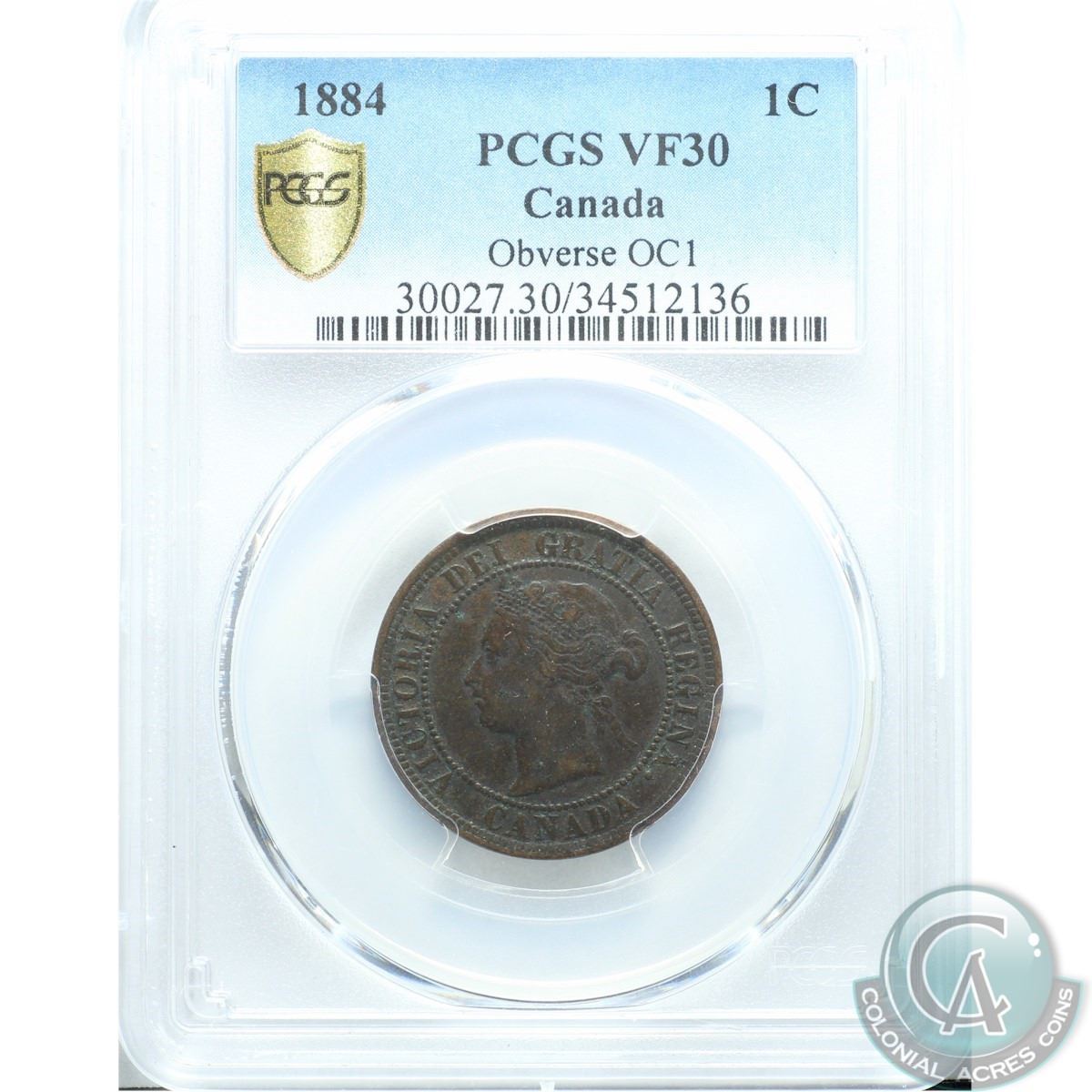 1-cent 1884 Obverse 1 PCGS Certified VF-30.