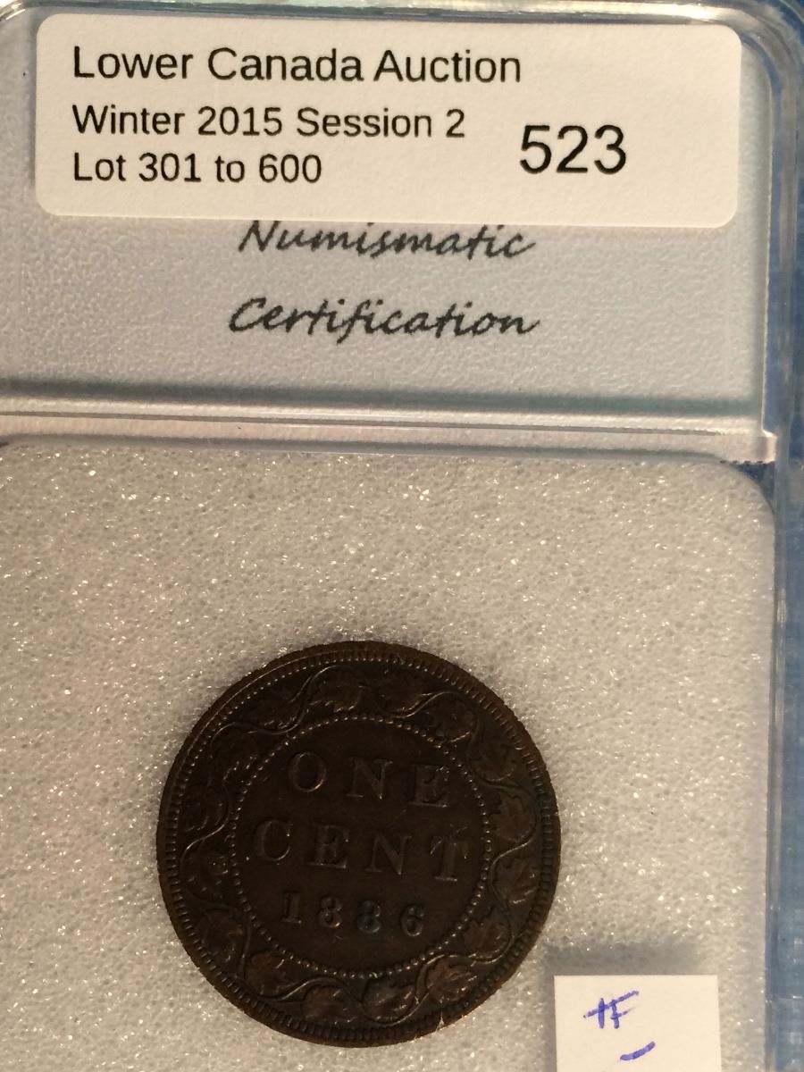 1 cent 1886; NNC certified AU-50. Not noted Obverse 2.