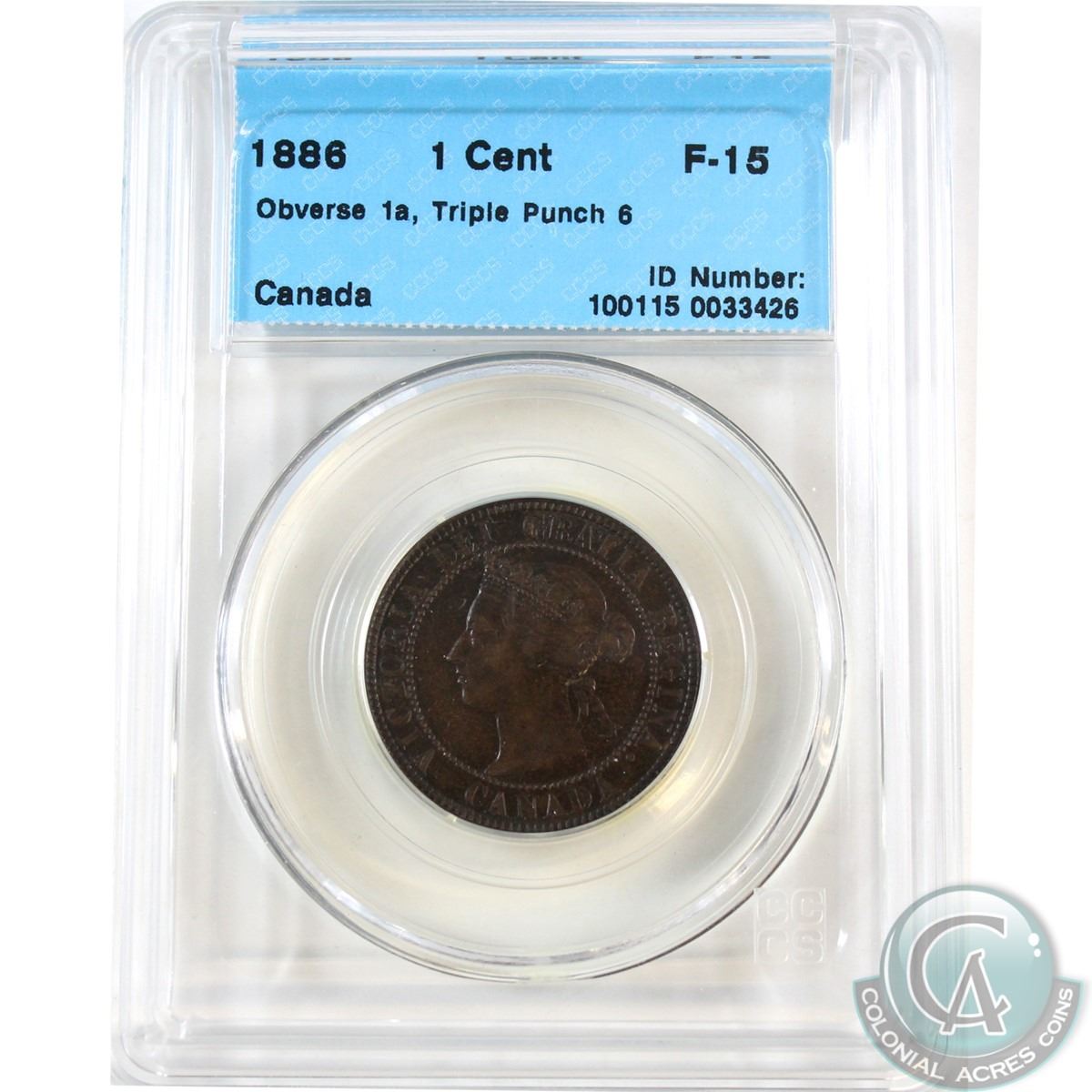 1-cent 1886 Obverse 1a CCCS Certified VF-15. Triple Punch '6/6/6'