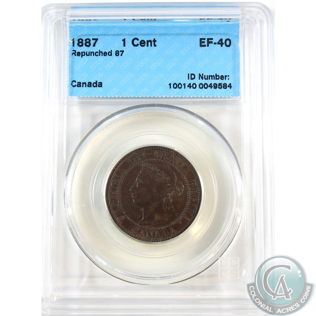 1-cent 1887 CCCS Certified EF-40, Repunched '87'.