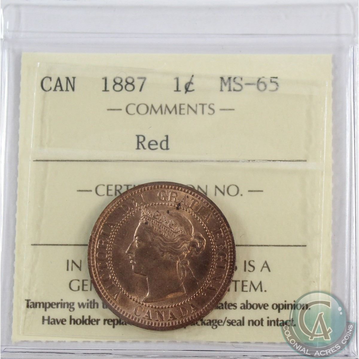 1-cent 1887 ICCS Certified MS-65 RED A Vibrant coin with near full red fields with exceptional luster throughout.
