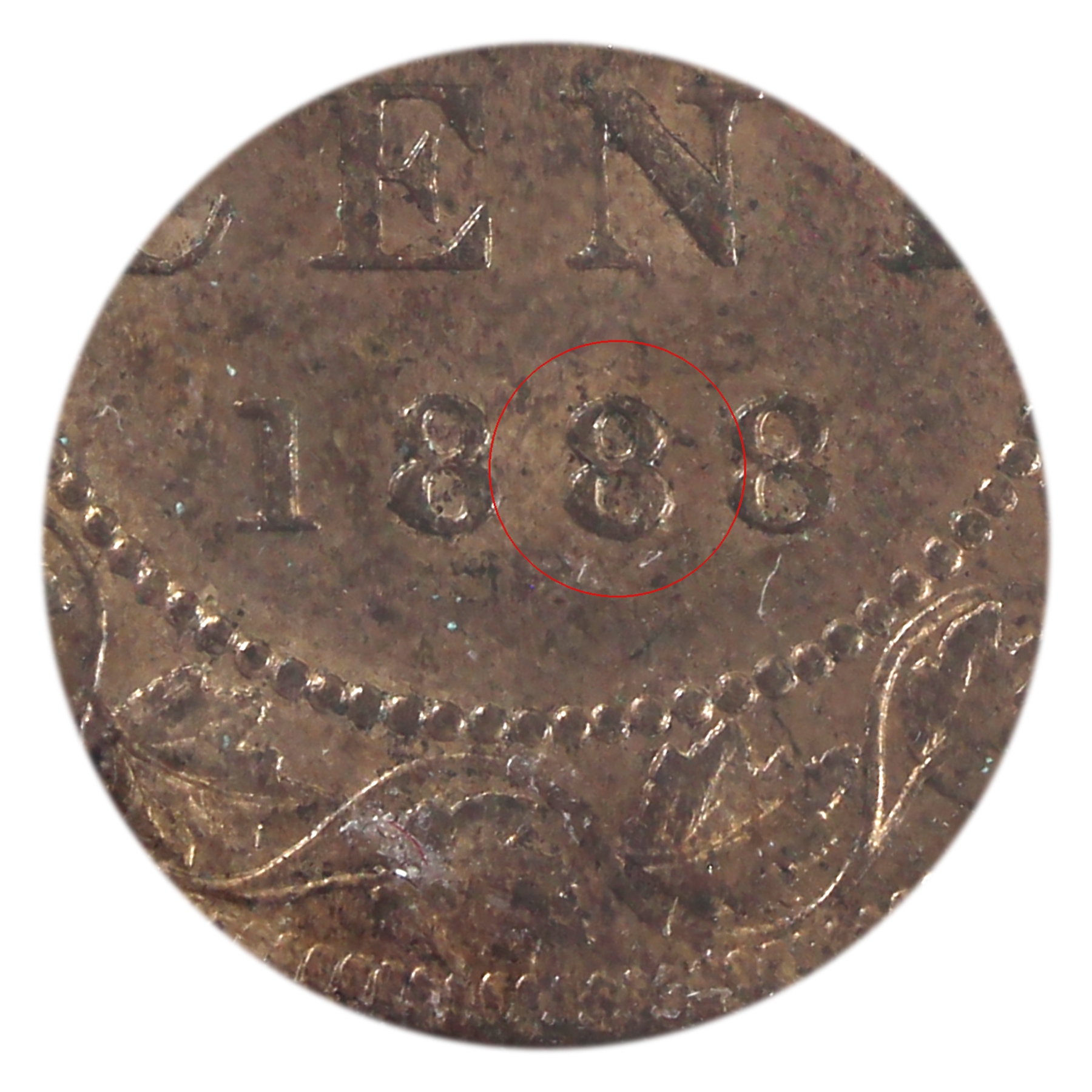 1-cent 1888 Repunched Middle 8 ICCS MS64 Red