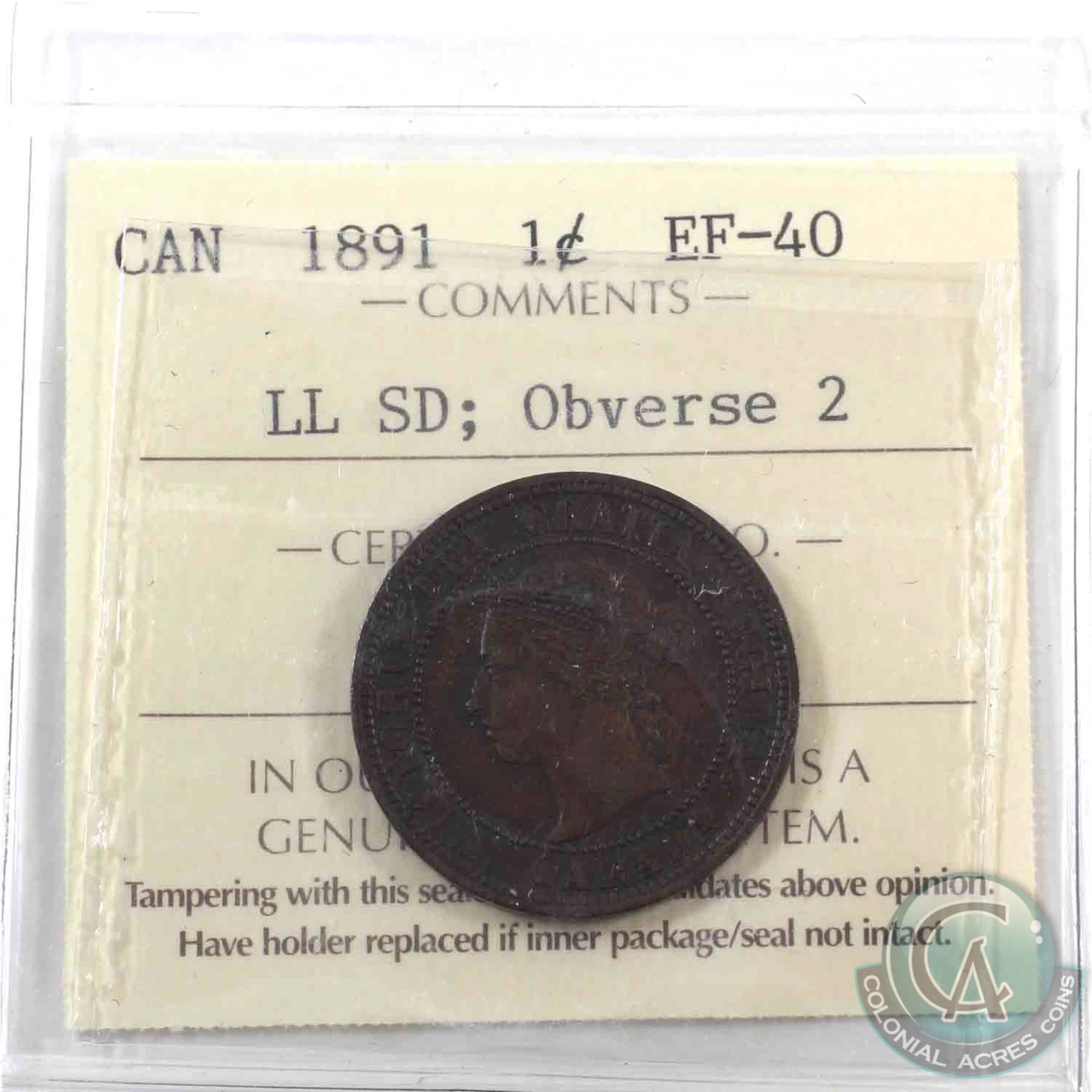 1-cent 1891 LL SD ICCS Certified EF-40 Obverse 2