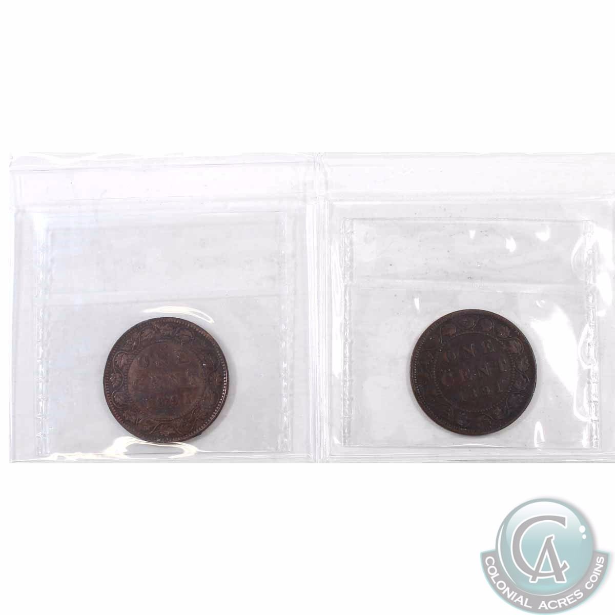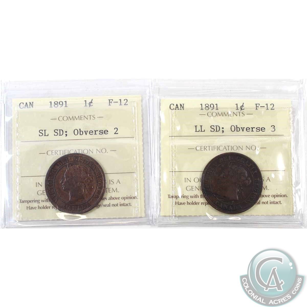 1-cent 1891 SD SL; Obverse 2 & SD LL; Obv.3, ICCS Certified F-12. 2pcs