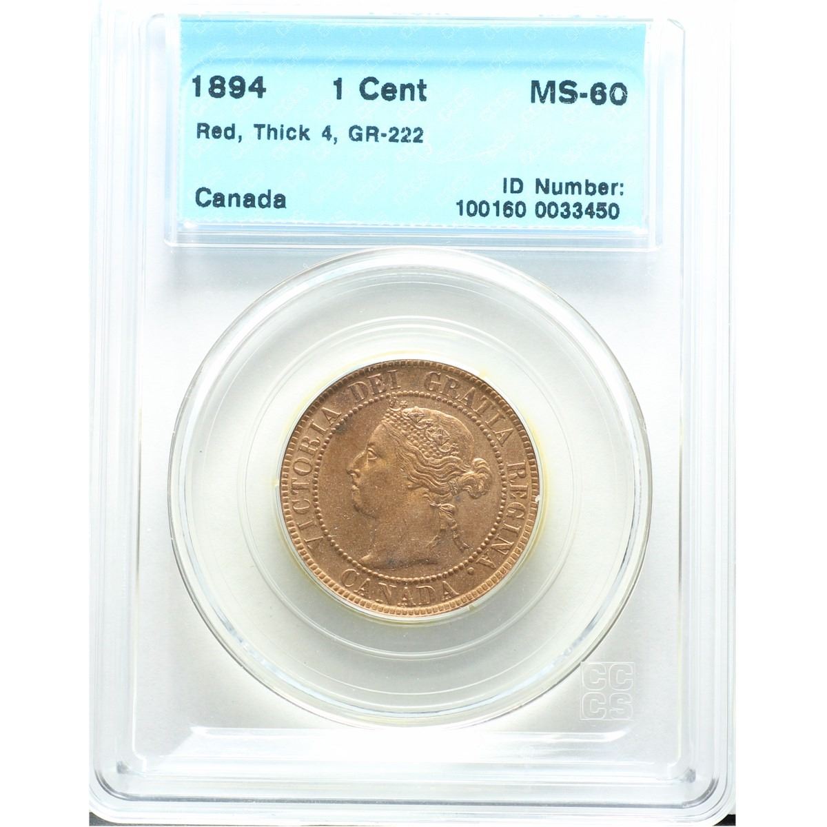 1-cent 1894 CCCS Certified MS-60 Red. Thick 4, GR-222