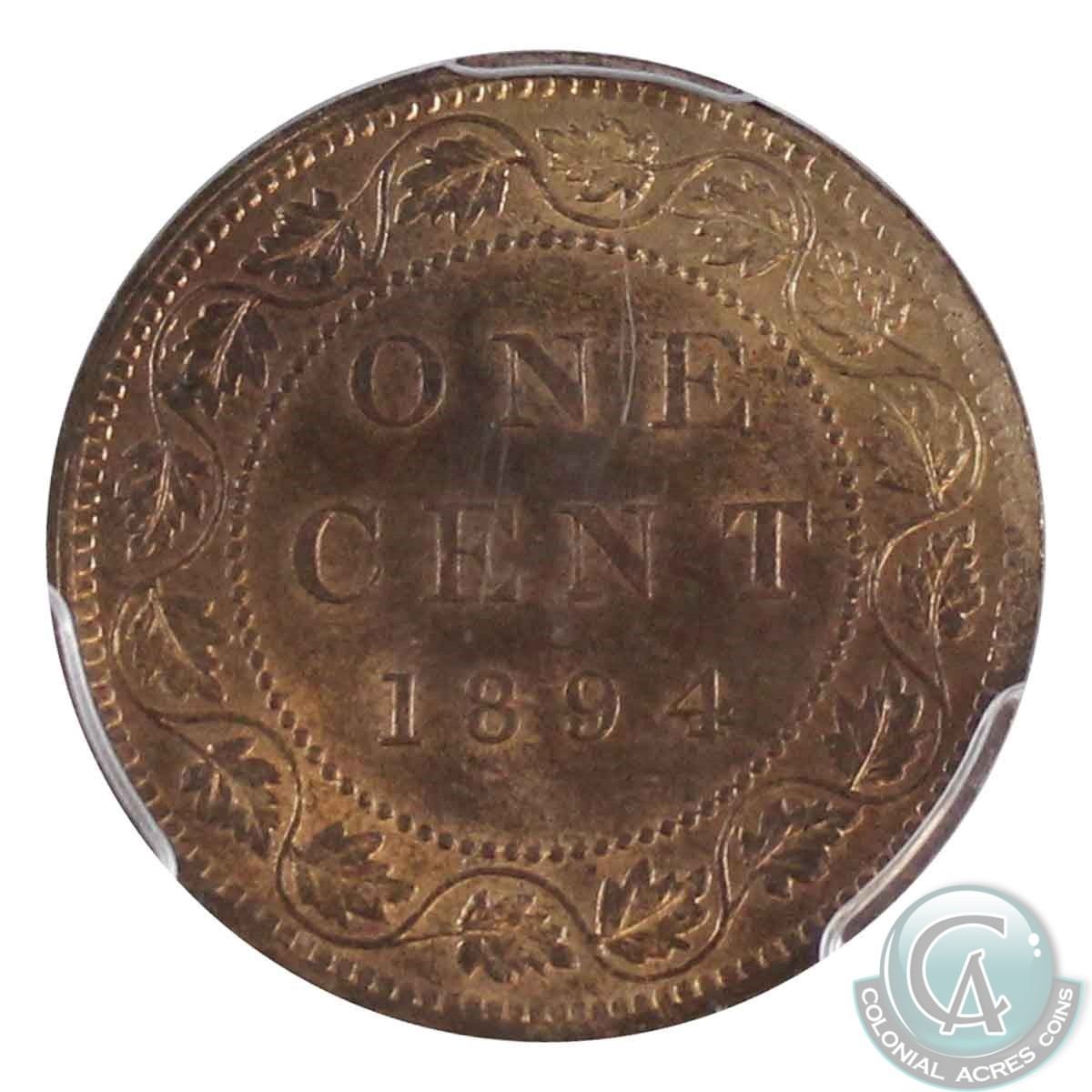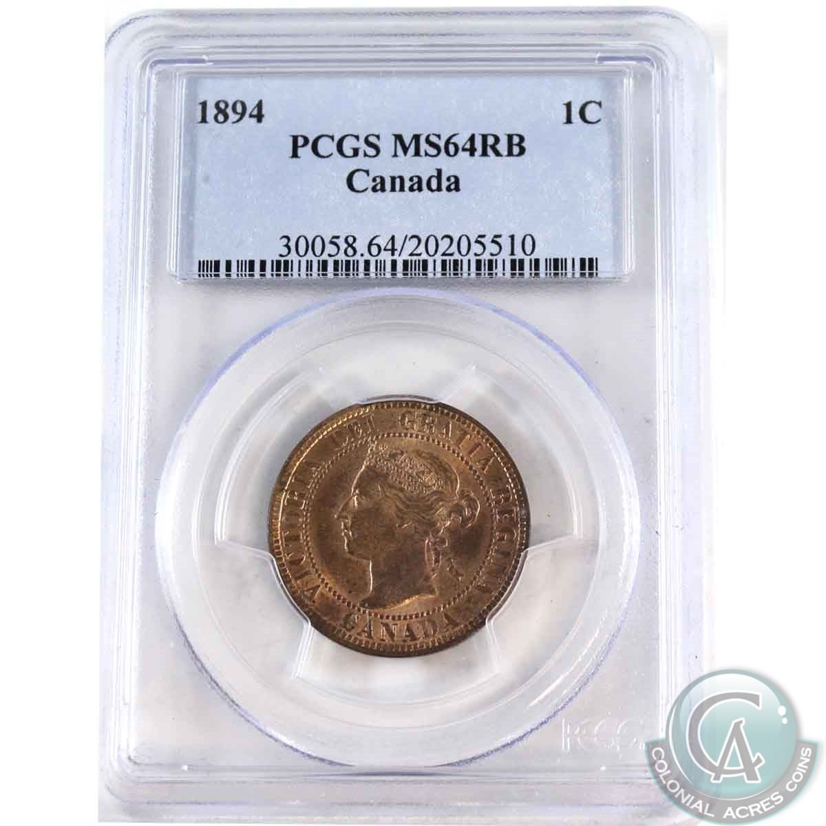1-cent 1894 PCGS Certified MS-64 RB. A bright lustrous coin with deep tones throughout.