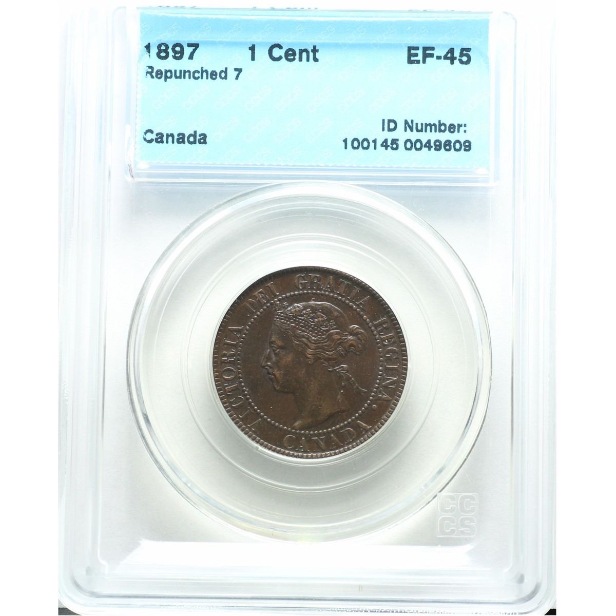 1-cent 1897 CCCS Certified EF-45. Repunched '7/7'.