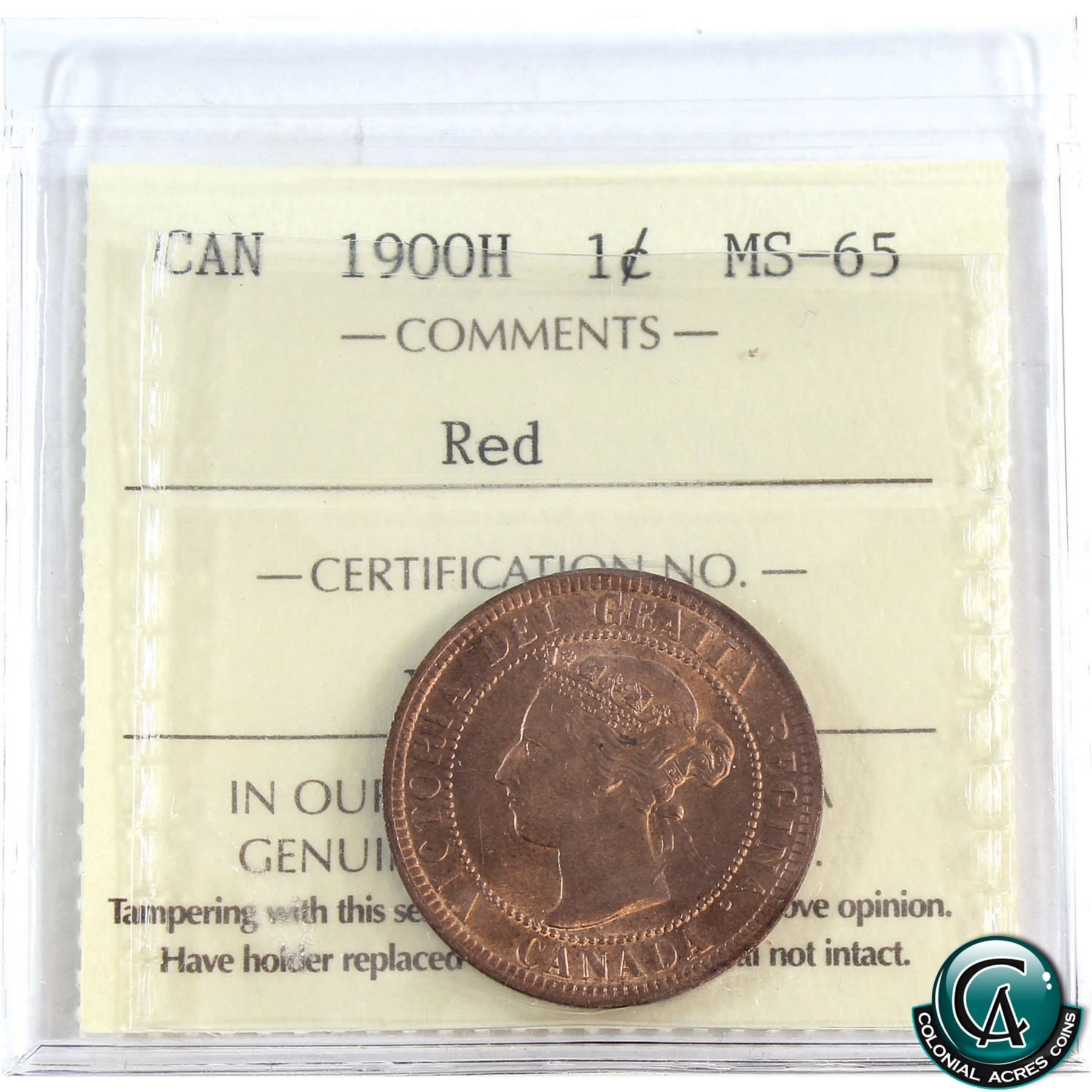 1-cent 1900H ICCS Certified MS-65 Red. Choice eye appeal with rolling mint luster.