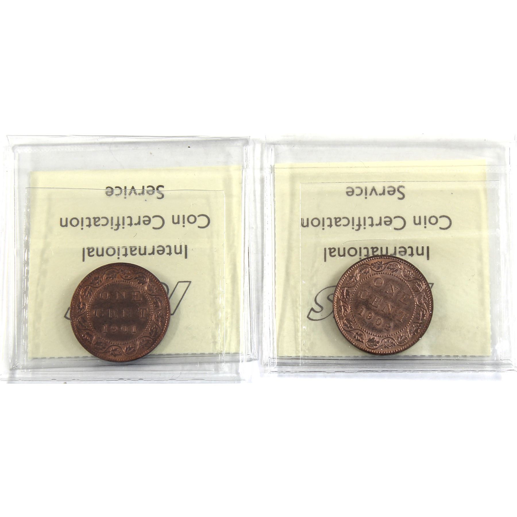 1-cent 1901 & 1902 ICCS Certified MS-63 RED! Attractive coins last year Victoria and First Year Edward VII (2pcs)