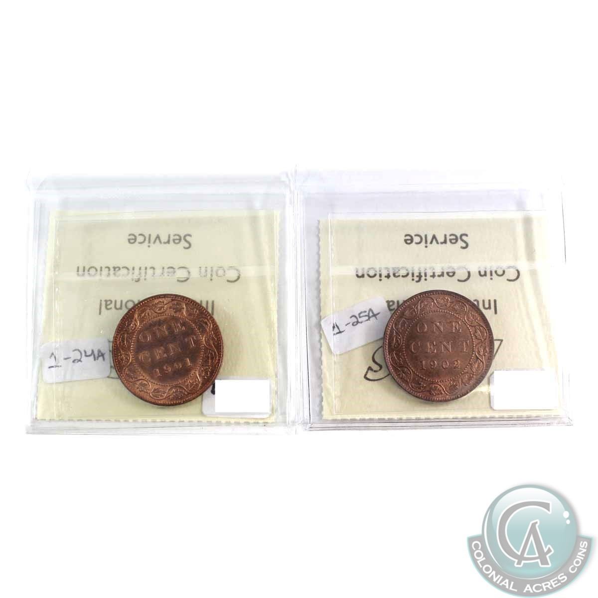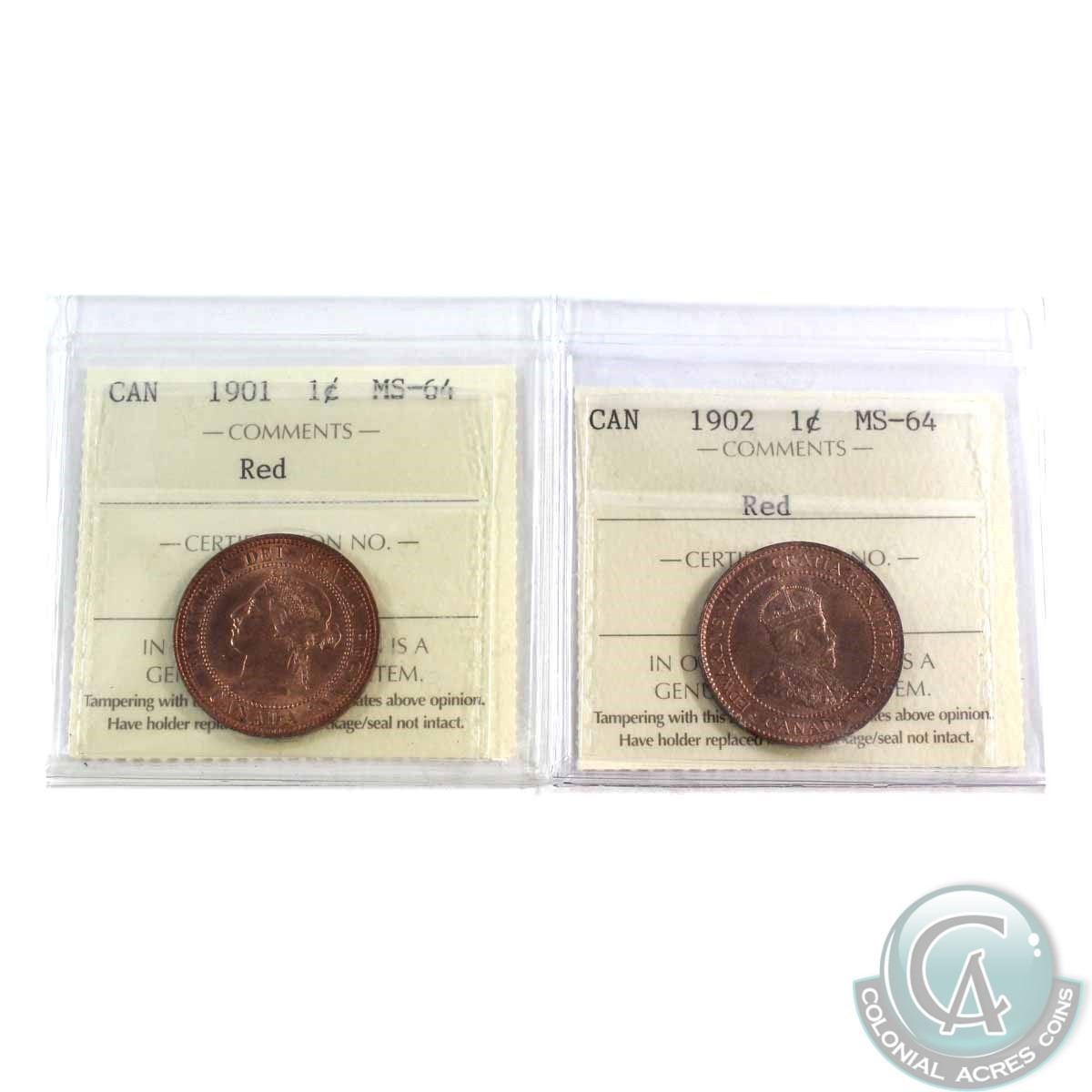 1-cent 1901 & 1902 ICCS Certified MS-64. 2pcs