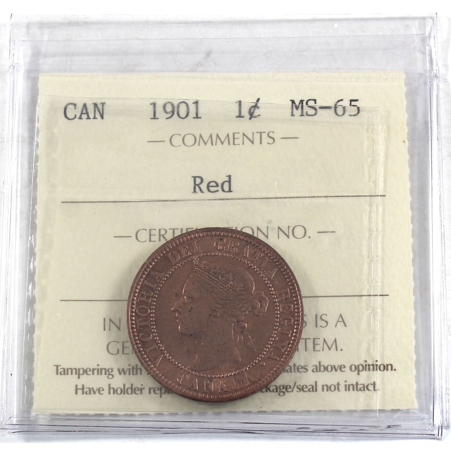 1-cent 1901 ICCS Certified MS-65 RED! Deep cheery red tones with strong strike details.