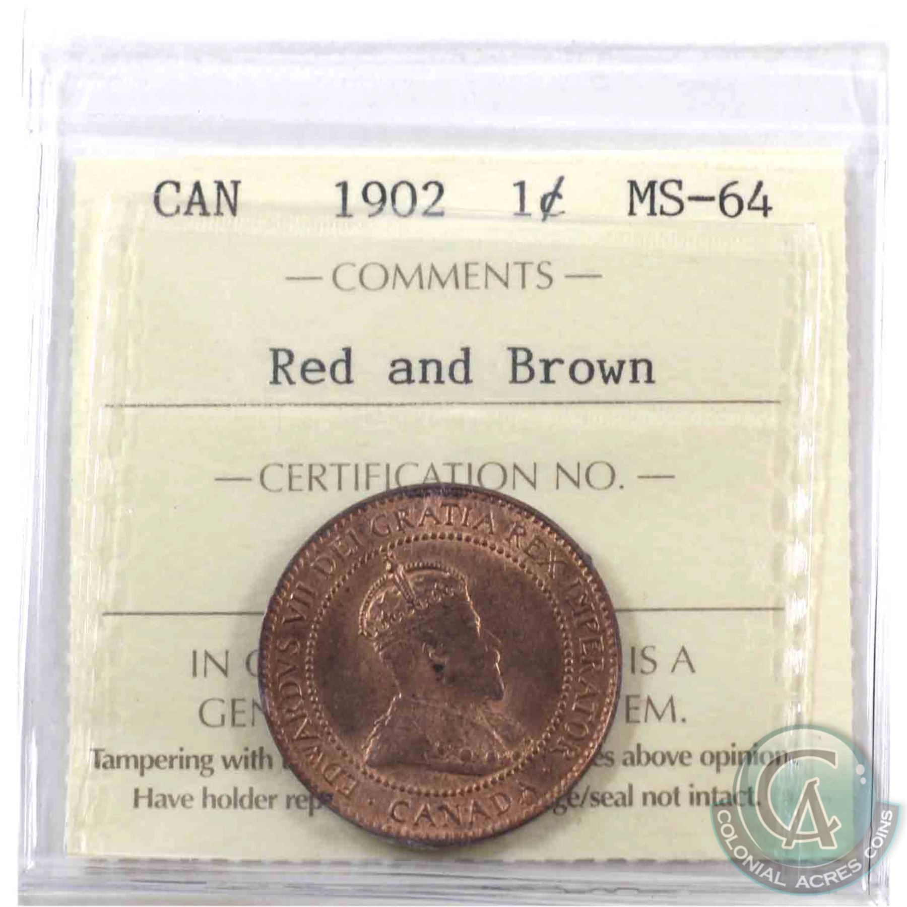 1-cent 1902 ICCS Certified MS-64 Red & Brown