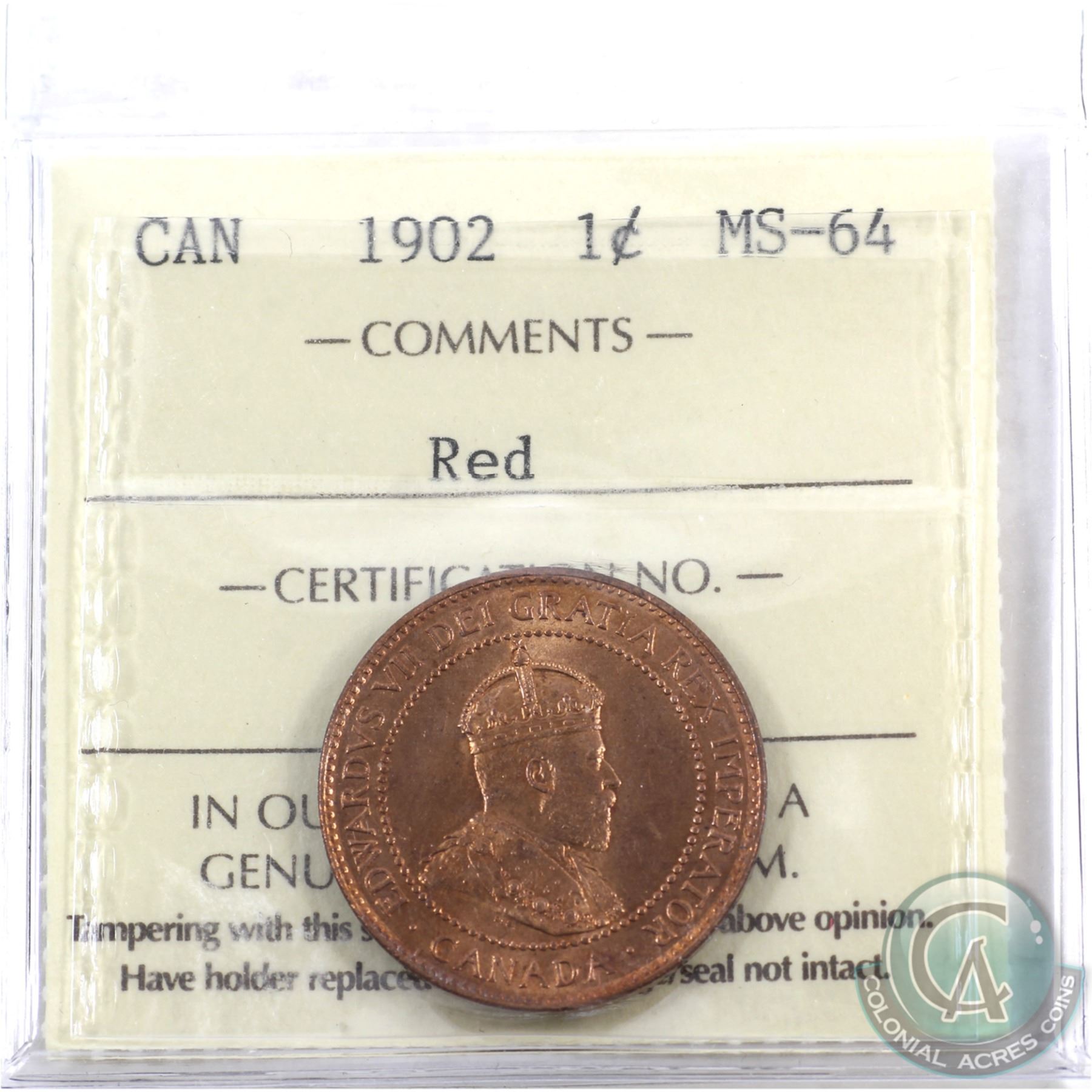 1-cent 1902 ICCS Certified MS-64 Red