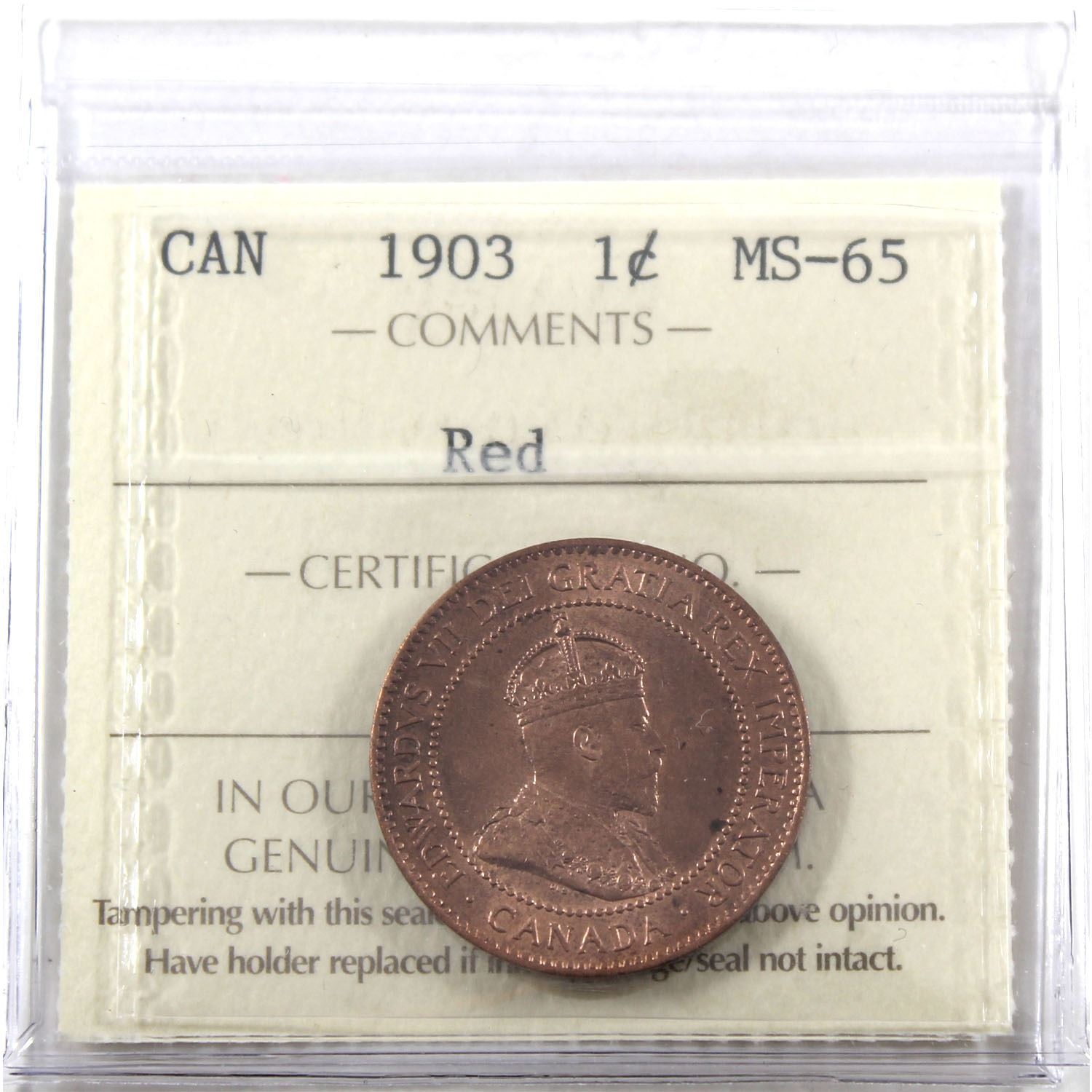 1-cent 1903 ICCS Certified MS-65 RED! Nice Lustrous full red coin!
