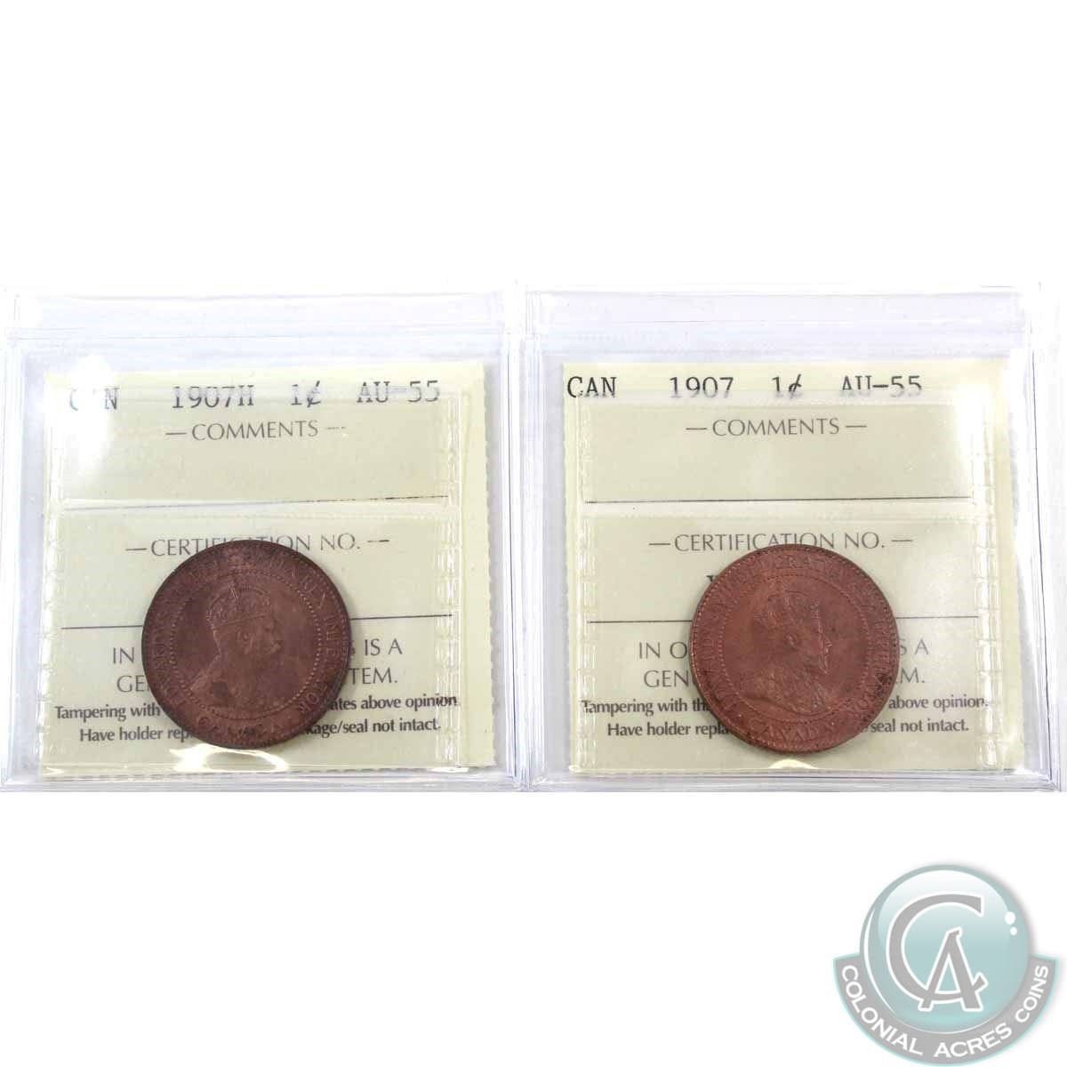 1-cent 1907 & 1907H ICCS Certified AU-55. 2pcs